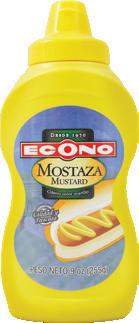 Kraft Variedad, SVT** Bot. de 16 oz. Reg. $3.99 c/u 298 c/u Salsa BBQ Kraft Variedad, SVT** Bot. de 18 oz. Reg. $2.49 c/u Esp. $2.00 c/u 2X $4 Salsas Old El Paso Variedad, SVT** Bot. “squeeze” de 9 oz. Reg. $3.29 c/u Esp. $3.00 c/u 2X $6 Vegetales Enlatados Goya Variedad, SVT** Lata de 8 a 8.75 oz. Reg. $1.29 c/u Esp. 84¢ c/u *No incluye Habas Verdes, Sauerkraut o Bajo en Sodio *No incluye Creamy Queso Macaroni & Cheese Kraft Variedad, SVT** Caja de 5.5 a 7.25 oz. Reg. $1.89 c/u Esp. $1.67 c/u 3X $5 Sopas Campbell’s Vegetales, Vegetariana o Chicken Noodles, SVT** Lata de 10.5 o 10.75 oz. Reg. $1.49 c/u Esp. $1.25 c/u 4X $5 6X $5 Bacalaitos o Aítos Goya Caja de 4.5 oz., SVT** Reg. $1.99 c/u Esp. $1.67 c/u 3X $5 Cheez Whiz Kraft Frasco de 15 oz. Reg. $3.99 348 Salsas Cremosas Prego Italian Homestyle Alfredo, Alfredo Artisan Four Cheese o Roasted Garlic Parmesan, SVT** Frasco de 14.5 oz. Reg. $3.99 c/u 348 c/u Cooking Spray Smart Chef Variedad, SVT** Env. de 3 o 5 oz. Reg. $2.39 c/u Esp. $1.67 c/u 3X $5 Sea Salt ECONO Env. de 24.5 oz. Reg. $2.99 c/u Esp. $2.50 c/u 2X $5 Aceite de Oliva ECONO 100% Puro Lata de 16 oz. Reg. $5.29 448 19.4 oz. 64 oz. 128 oz. ECONOMIZAS MÁS CONNUESTROS Empaques Familiares Aceite Mazola Maíz o Canola, SVT** Env. de 96 oz. Reg. $11.99 c/u
