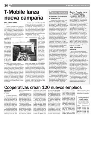 Cooperativas crean 120 nuevos empleos REDACCIÓN NEGOCIOS EL VOCERO