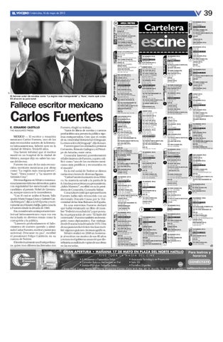 MEXICO — El escritor y ensayista mexicano Carlos Fuentes, uno de los más reconocidos autores de la literatura latinoamericana, falleció ayer en la ciudad de México. Tenía 83 años. Una fuente informó que el escritor murió en un hospital de la ciudad de México, aunque dijo no saber las causas del deceso. Fuentes era uno de los más reconocidos escritores mexicanos por obras como “La región más transparente”, “Aura”, “Terra nostra” y “La muerte de Artemio Cruz”. Diversas figuras en México comenzaron a lamentar el deceso del escritor, quien con regularidad fue mencionado como candidato al premio Nobel de Literatura, aunque nunca se lo concedieron. “Con él casi se acaba el boom. Sólo queda Mario Vargas Llosa y Gabriel García Márquez”, dijo a la AP el poeta y escritormexicanoHomeroAridjis,quienconocía a Fuentes desde la década de 1960. Era considerado un importante intelectual latinoamericano cuya voz era escuchada en diversos temas como la corrupción y la política. “Lamento profundamente el fallecimiento de nuestro querido y admirado Carlos Fuentes, escritor y mexicano universal. Descanse en paz”, escribió el presidente Felipe Calderón en su cuenta de Twitter. El intelectual mexicano Enrique Krauze, quien tuvo diferencias literarias con