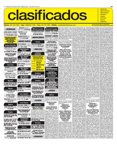 Metro: 787-724-1485 / Isla: 1-888-567-1390 / Fax: 787-725-7484 / EMAIL: clasificados@elvocero.com