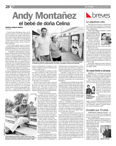 ella laboraba en mantenimiento. A partir de los años 40, criaron a sus hijos en el barrio Tras Talleres, donde todavía se reúne la familia para hacer sus fiestas. Reinaldo, el hijo menor, vive en los altos de la casa familiar y mandó a pintar un árbol genealógico en la sala, donde aparecen los nombres de los 46 nietos y los siete tataranietos de los Montañez Rodríguez. La progenitora de “El Niño de Tras Talleres” está convencida de que su hijo es protegido por Dios en todo momento porque ha sobrevivido a varios accidentes. Narró que cuando él tenía alrededor de 16 años, salió una noche con sus amigos Felipito y Junior“El Grande”. Al regresar, Andy se quedó en la casa de una novia que vivía en Hato Rey y los otros dos jóvenes de camino a sus casas tuvieron un accidente automovilístico que les causó la muerte. En abril pasado, el sonero se encontraba en Colombia y al trasladarse en una guagua hacia el aeropuerto, ocurrió un accidente y se lesionó Andy. Por eso tuvo que aplazar su concierto de aniversario en la música para el sábado, 14 de julio en el Coliseo José Miguel Agrelot en Hato Rey, San Juan. “El Señor lo ha libra'o de muchas. De esta (el accidente en Colombia), yo decía: ¡Dios mío! Cuando yo lo vi, era horrible. El doctor tenía la preocupación de que tuviera un tendón roto. Gracias a Dios, no tenía roto nada. Veía a mi hijo haciendo chistes (en el hospital). Yo no me quejo de mis hijos; todos han sido buenos. Yo me gocé todas las cosas de los nenes. Hoy día, las mamás no pueden disfrutar las ocurrencias de los hijos porque tienen que trabajar los dos. Todo eso me tocó a mí y me gocé a los nietos. Andy dice que él es mi bebé”, señaló contenta doña Celina, quien tiene una memoria privilegiada y ha vivido muy feliz con toda su prole y junto a su gente de Tras Talleres.