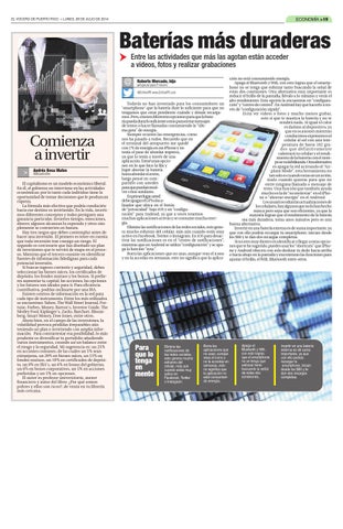Baterías más duraderas Entre las actividades que más las agotan están acceder a videos, fotos y realizar grabaciones