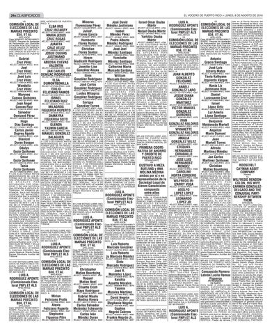 #ELECT.4507768 #REC. 4630 A LOS ELECTORES ANTES MENCIONADOS SE LES INFORMA QUE SE HA RADICADO APELACION EN EL CASO DE EPIGRAFE POR RECUSACIÓN POR DOMICILIO Y SE LES NOTIFICA UNA CITACIÓN A VISTA EN EL TRIBUNAL DE PRIMERA INSTANCIA, SALA 307 REGIÓN J U D IC I A L D E MA Y A GÜ E Z, LOCALIZADA EN LA AVENIDA HIRAM D. CABASSA EN MAYAGÜEZ, EL DÍA 18 DE AGOSTO DE 2016 A LAS 8:30 AM. SE LE APERCIBE A LAS PERSONAS ANTES CITADAS SOBRE LA OBLIGACIÓN DE COMPARECER EN EL LUGAR, FECHA Y HORA SEÑALADA EN ESTA CITACIÓN Y DE NO HACERLO PODRÁ TOMARSE LA DETERMINACIÓN O DECISIÓN QUE PROCEDA EN SU AUSENCIA, INCLUSO CONCEDIDO EL REMEDIO SOLICITADO. Y SE PROCEDERÁ CON LA MISMA SIN MAS CITARLE U OÍRLE. LCDO . CARLOS F. VERA MUÑOZ RUA Núm. 16,091 PO Box 1092 Hormigueros, PR 00660-1092 Tel. (787) 356-4760 Email: cafevera@yahoo.com EXPEDIDO BAJO MI FIRMA Y SELLO DEL TRIBUNAL, HOY 4 DE AGOSTO DE 2016. LIC NORMA G. SANTANA IRIZARRY. Secretaria Regional. Wanda Rentas Burgos Secretaria Auxiliar del Tribunal. MR-405 ESTADO LIBRE ASOC IADO DE PUERTO RIC O TRIBUNAL DE PRIMERA INSTANCIA SALA SUPERIOR DE AGUADILLA