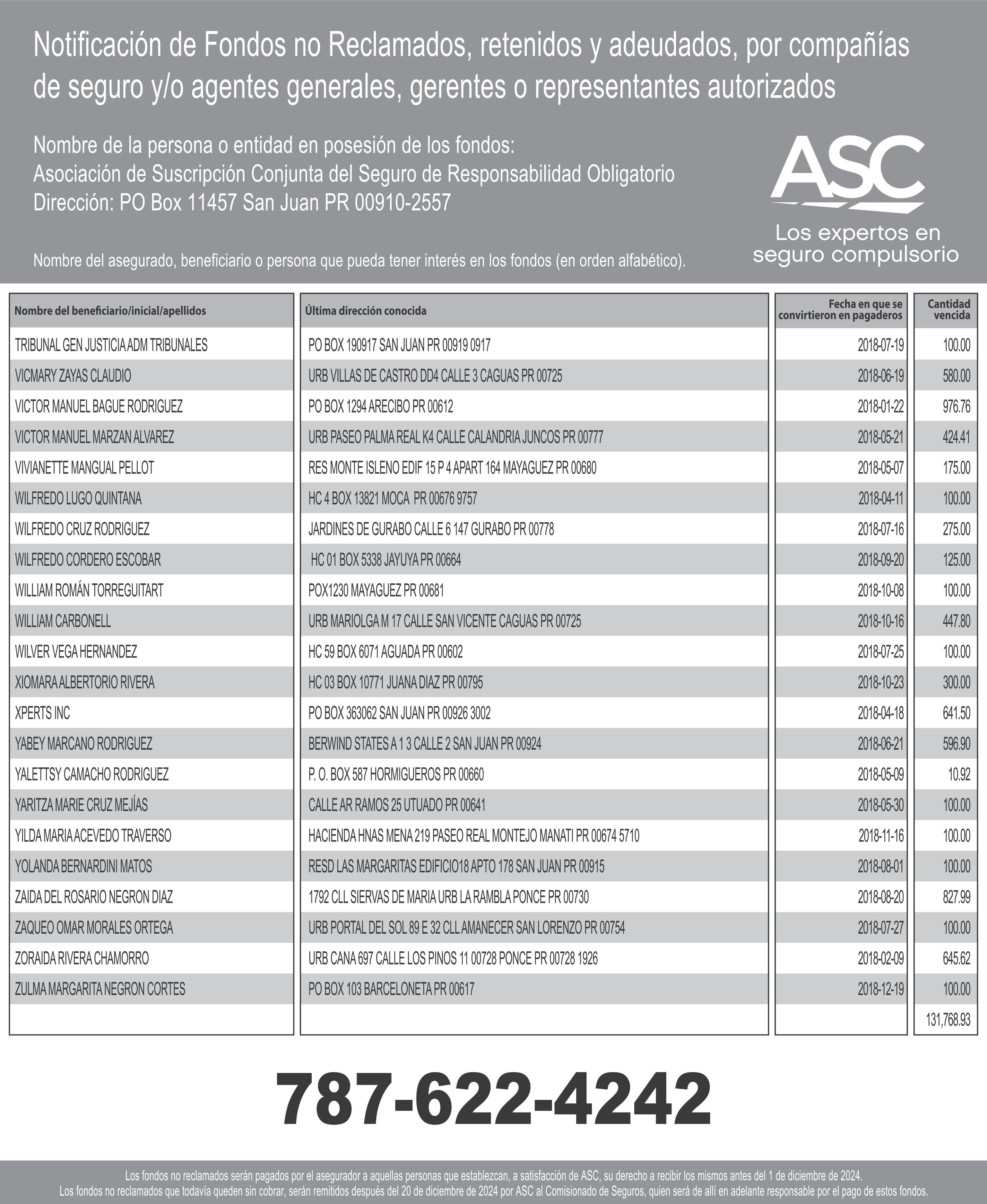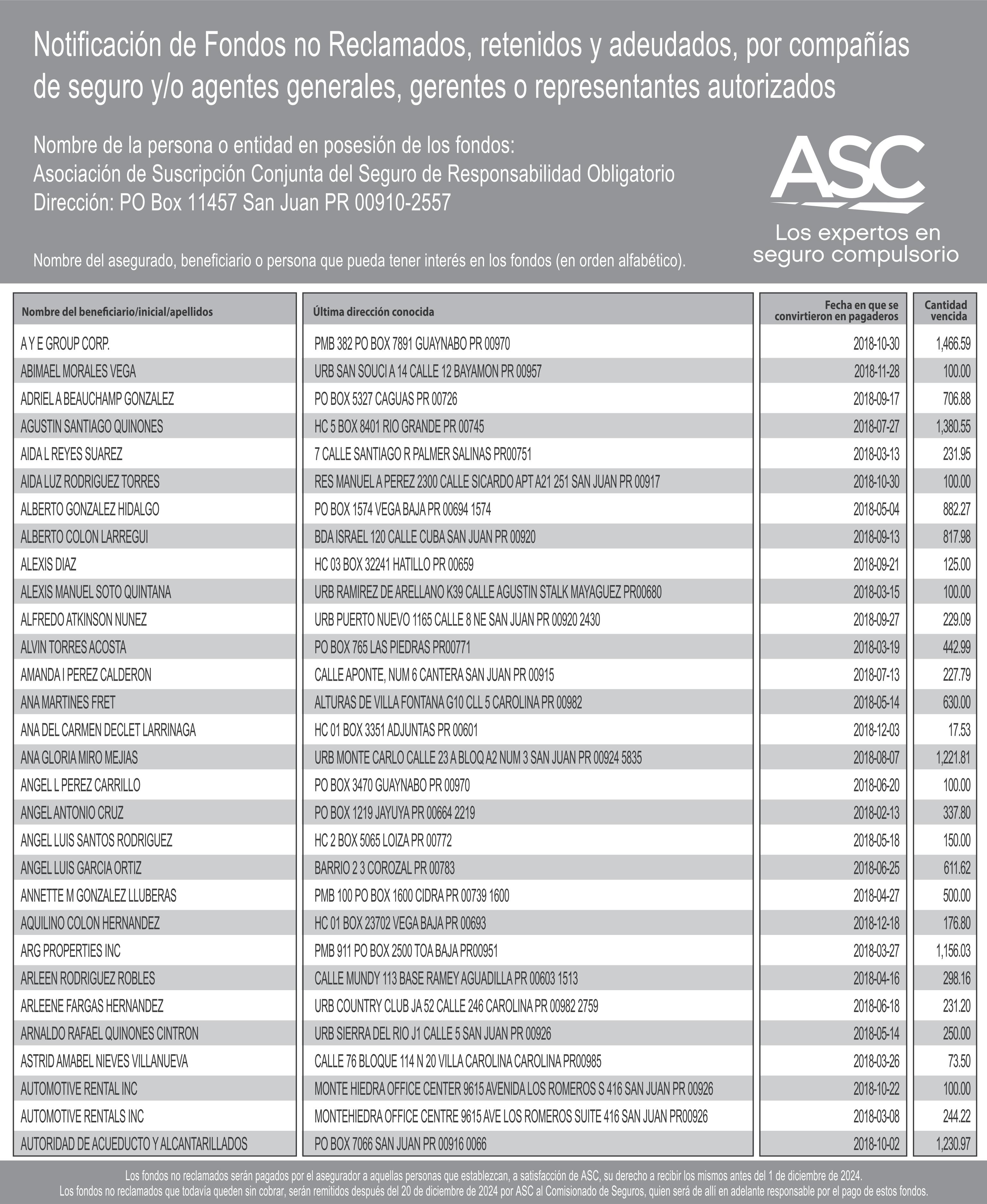 Dirección Postal: PO Box 15074 San Juan, PR 00902-7515