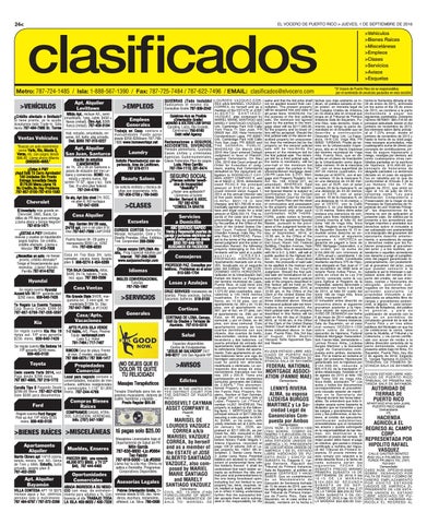 Metro: 787-724-1485 / Isla: 1-888-567-1390 / Fax: 787-725-7484 / 787-622-7496 / EMAIL: clasificados@elvocero.com