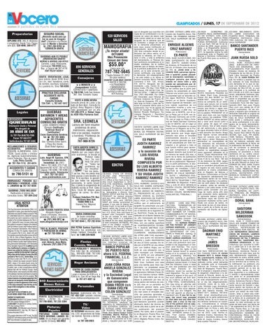 CLASIFICADOS / LUNES, 17 DE SEPTIEMBRE DE 2012 El periódico de Puerto Rico