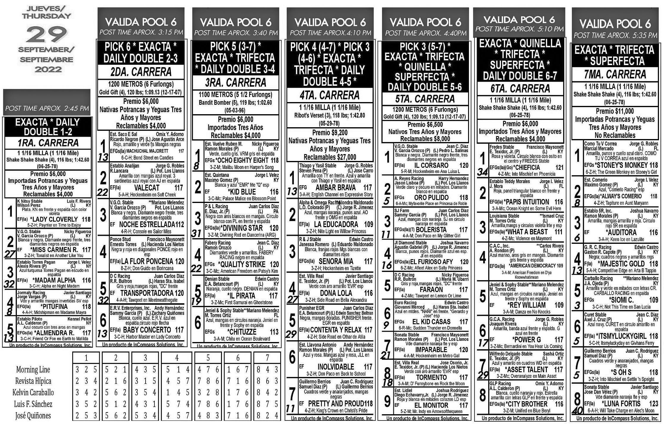 En el resto de las carre ras válidas para el Pool de seis, en la segunda nuestro cuadro tiene como favorita a Transportadora que viene de ganar y llegar segunda en sus dos recientes con la monta de Díaz, quien repite.