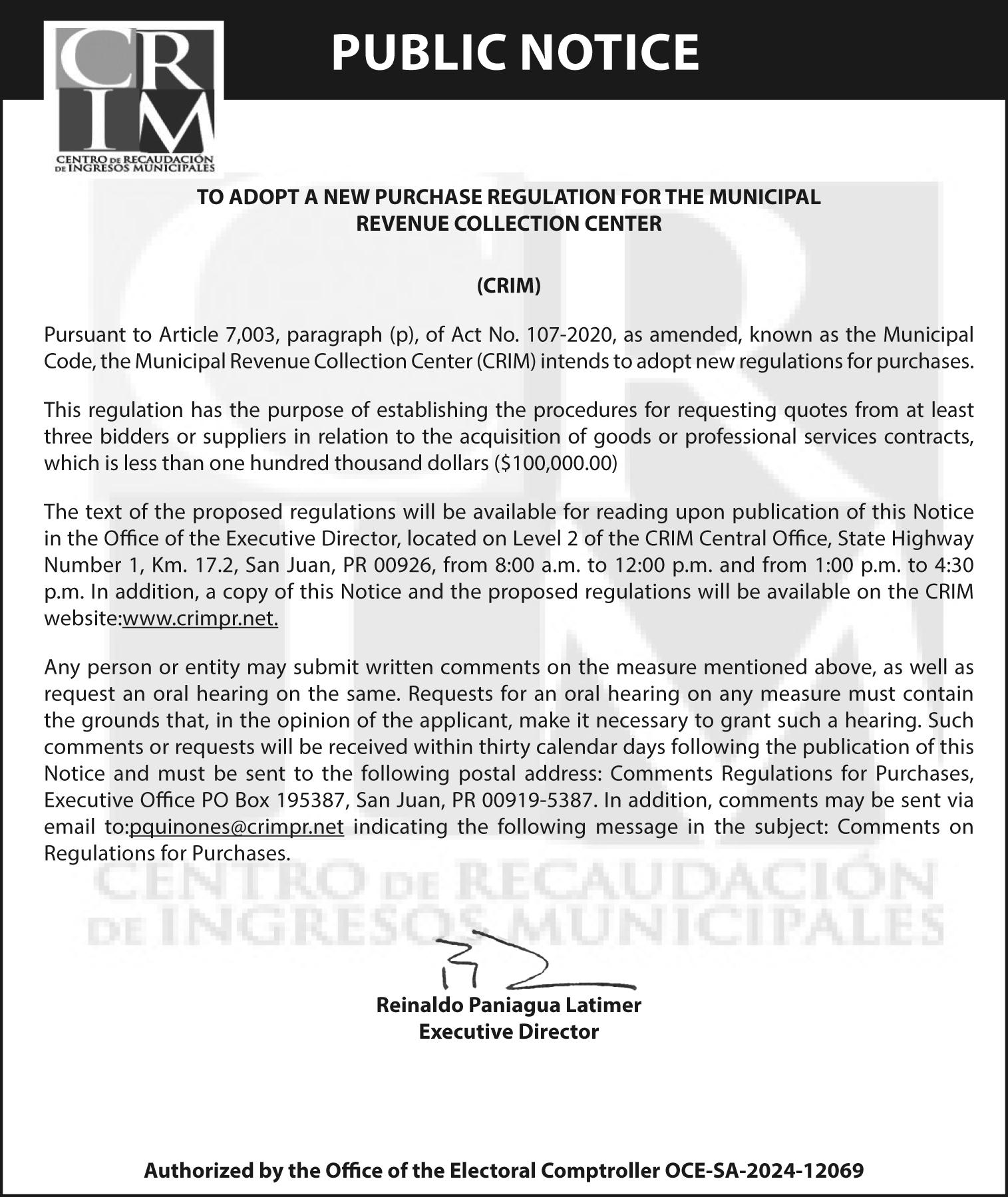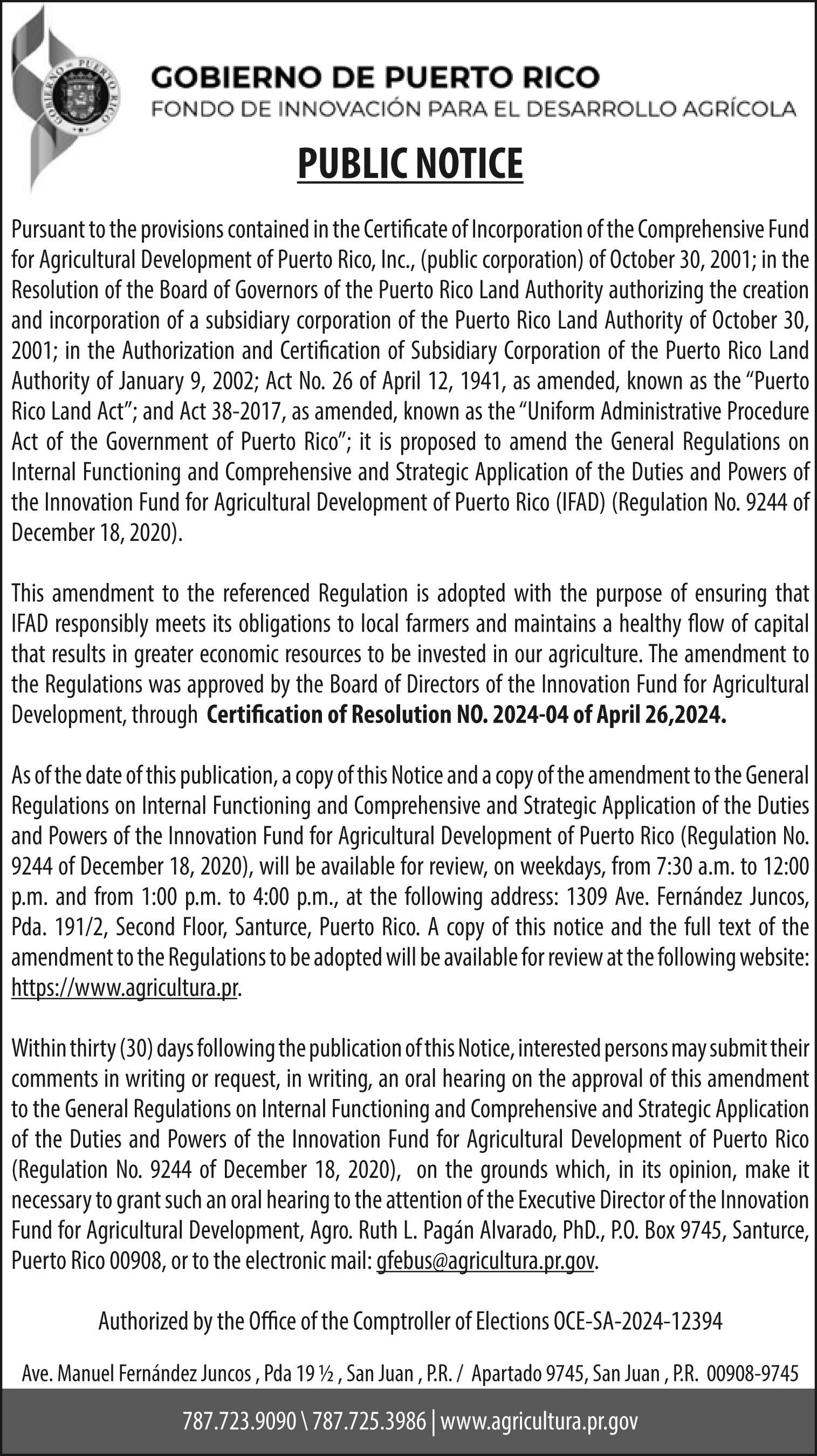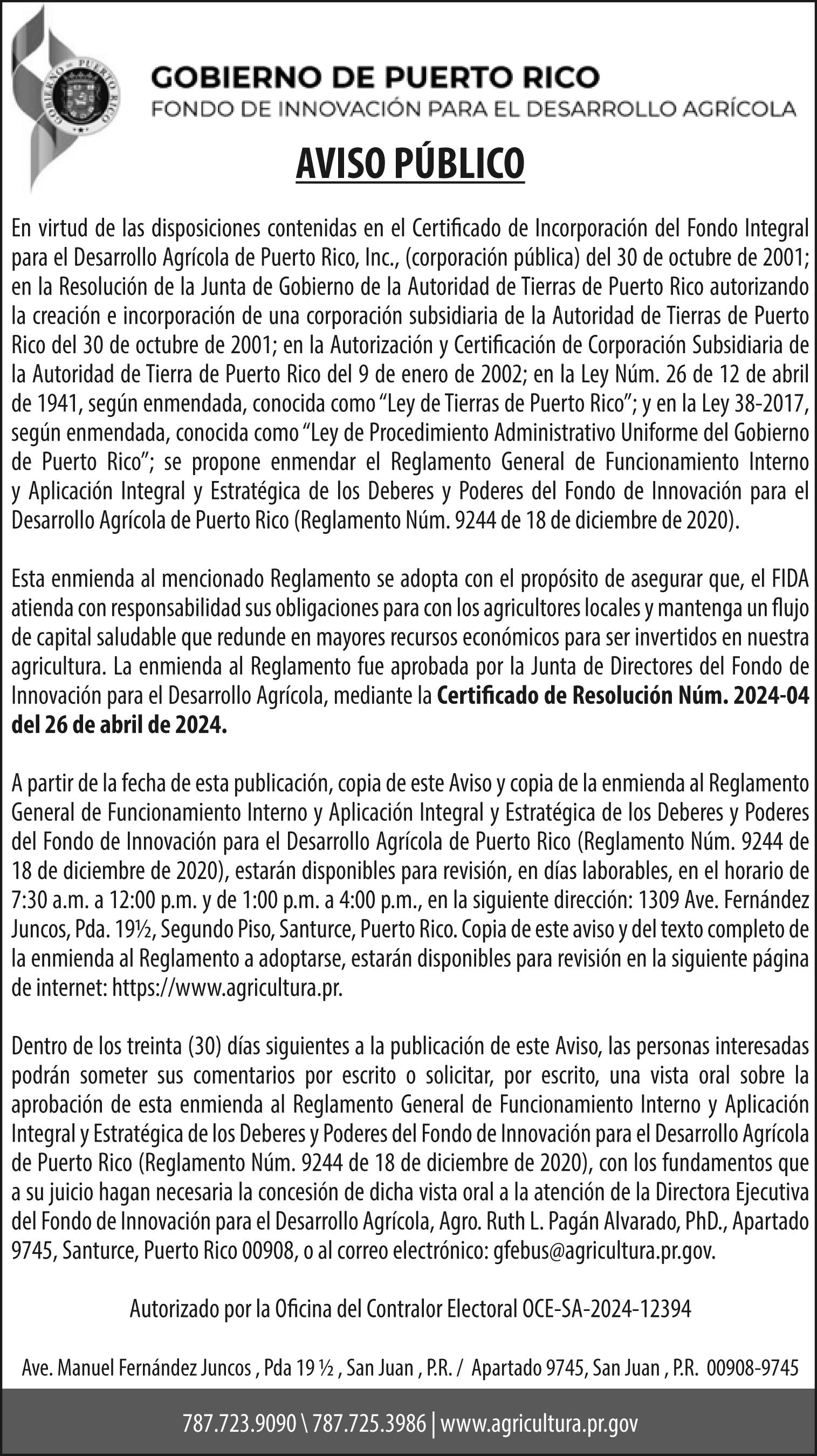 Correo: El Vocero de Puerto Rico, Depto de Edictos, PO Box 15074, San Juan PR 00902