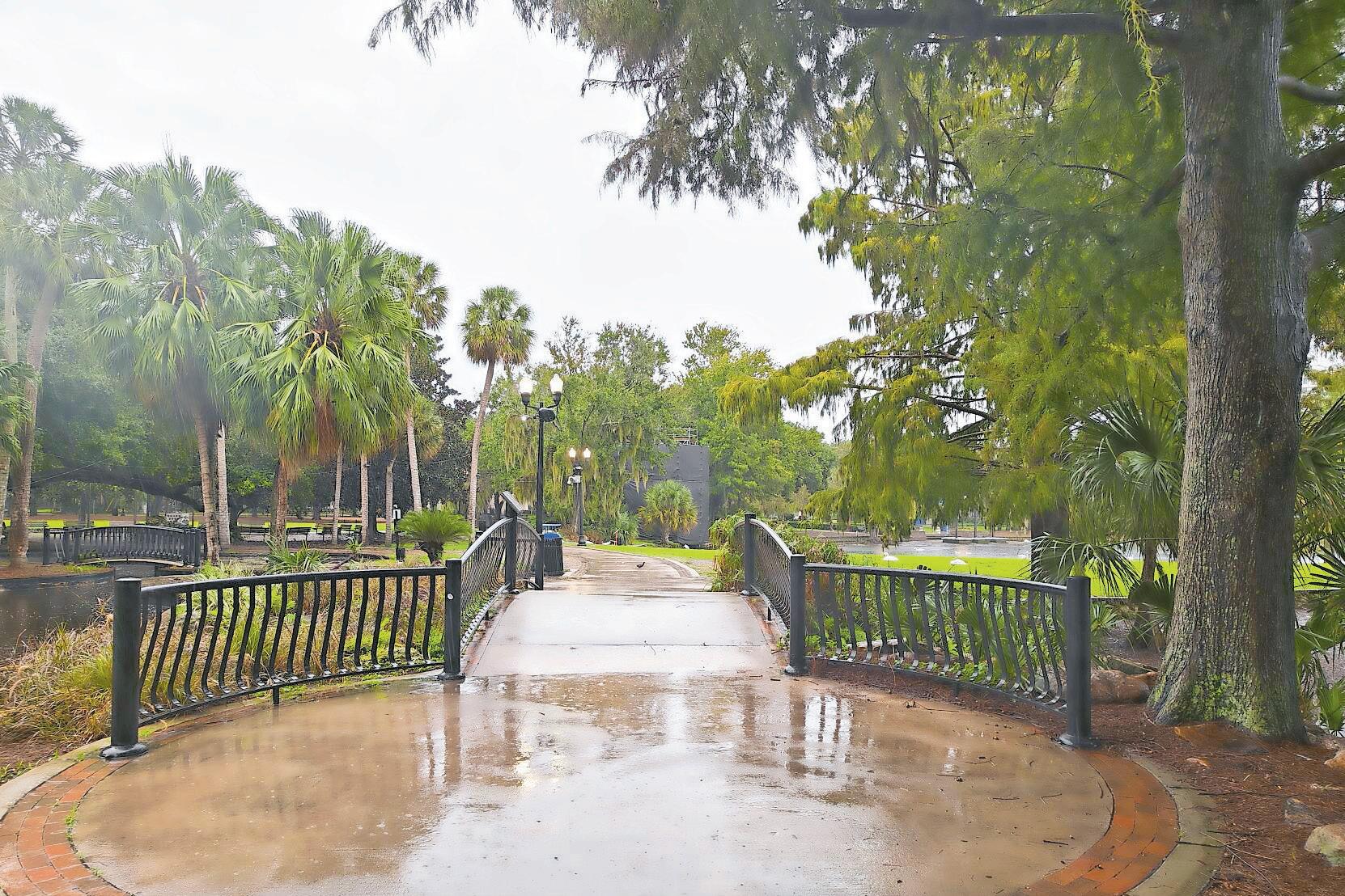 La lluvia incesante era casi la única compañía en el Eola Park, uno de los emblemas de Orlando. Los senderos, despojados de las miles de personas que suelen pasear por su lago y dan de comer a patos y cisnes, respiraban soledad. Apenas dos valientes se animaron al mal tiempo y corrían por la orilla. La última salida antes del huracán.