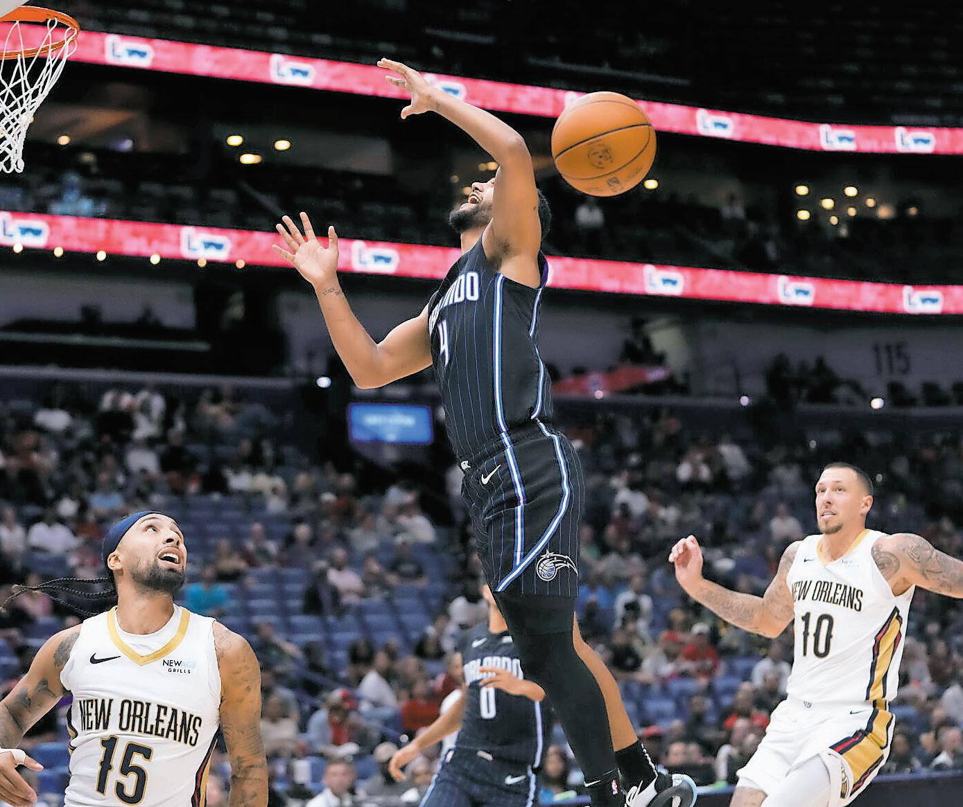 Alvarado anotó sie te puntos, capturó cuatro rebotes y repartió cinco asisten cias en 18 minutos durante el pri mer partido de pretemporada de los Pelicans, en el que se impusie ron sobre el Magic de Orlando por