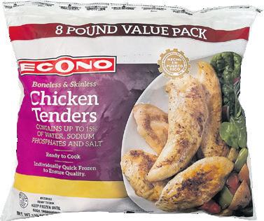 *Límite de 4 pqtes. por cliente por compra.*Límite de 8 pqtes. por cliente por compra. *Límite de 4 env. por cliente por compra. *Límite de 6 env. por cliente por compra. Pan Club ECONO Variedad, SVT** Pqte. de 24 oz. Reg. $3.00 pqte. Esp. $2.50 pqte. Yogurt Tube ECONO Variedad, SVT** Caja de 8 un. de 2 oz. Reg. $2.99 c/u Esp. $2.50 c/u 2X $5 Yogurt Light ECONO Variedad, SVT** Env. de 32 oz. Reg. $3.49 c/u Yogurt ECONO Variedad, SVT** Pqte. de 4 un. de 4 oz. Reg. $3.19 pqte. 268 pqte. Pound Cake ECONO Congelado, Variedad, SVT** Env. de 11 oz. Reg. $2.89 c/u Esp. $2.50 c/u 2X $5 Blueberry Congelado ECONO Bolsa de 1.5 lbs. Reg. $5.99 498 Donas Glaseadas ECONO Caja de 6 un. Reg. $2.69 c/u Esp. $2.00 c/u 2X $4 Vegetales Congelados ECONO Variedad, SVT** Clear Bag 3 lbs. Reg. $6.99 c/u 598 c/u Gandules ECONO Cong. / Perú Pqte. de 14 oz. Reg. $1.79 pqte. Esp. $1.25 pqte. 4X $5 Mini Mazorca ECONO Cong. / Pqte. de 12 un. Reg. $5.79 468 Chicken Tenders o Nuggets ECONO Variedad, SVT** Pqte. de 3 lbs. Reg. $8.49 c/u 748 c/u Albóndigas ECONO Bolsa de 4 lbs. Reg. $11.99 c/u 998 c/u Patties ECONO Carne de Res & Cerdo, Pavo o Pollo, SVT** Caja de 6 un. de 1.5 lb. Reg. $5.99 c/u 498 c/u c/u Tocineta ECONO Regular o Low Sodium, SVT** Pqte. de 12 oz. Reg. $4.99 pqte. Mantequilla ECONO Caja de 1 lb. Reg. $5.99 c/u 498 c/u Whipped Cream ECONO Lata de 7 oz. Reg. $3.89 c/u 298 c/u Bizcochos de Frutas ECONO Pqte. de 16 oz. Reg. $5.99 448 Alive Blend o Boost Blend ECONO SVT**, Bolsa de 3 lbs. Reg. $9.49 c/u 798 c/u Tropical Blend ECONO Cong., Bolsa de 3 lbs. Reg. $8.99 798Arroz con Dulce ECONO Env. de 28 oz. Reg. $7.49 648 Party Tray ECONO Bandeja de 16 oz. Reg. $8.49 748 Palitos de Pana ECONO Cong., Pqte. de 20 oz. Reg. $4.29 pqte. Esp. $2.50 pqte. 2X $5