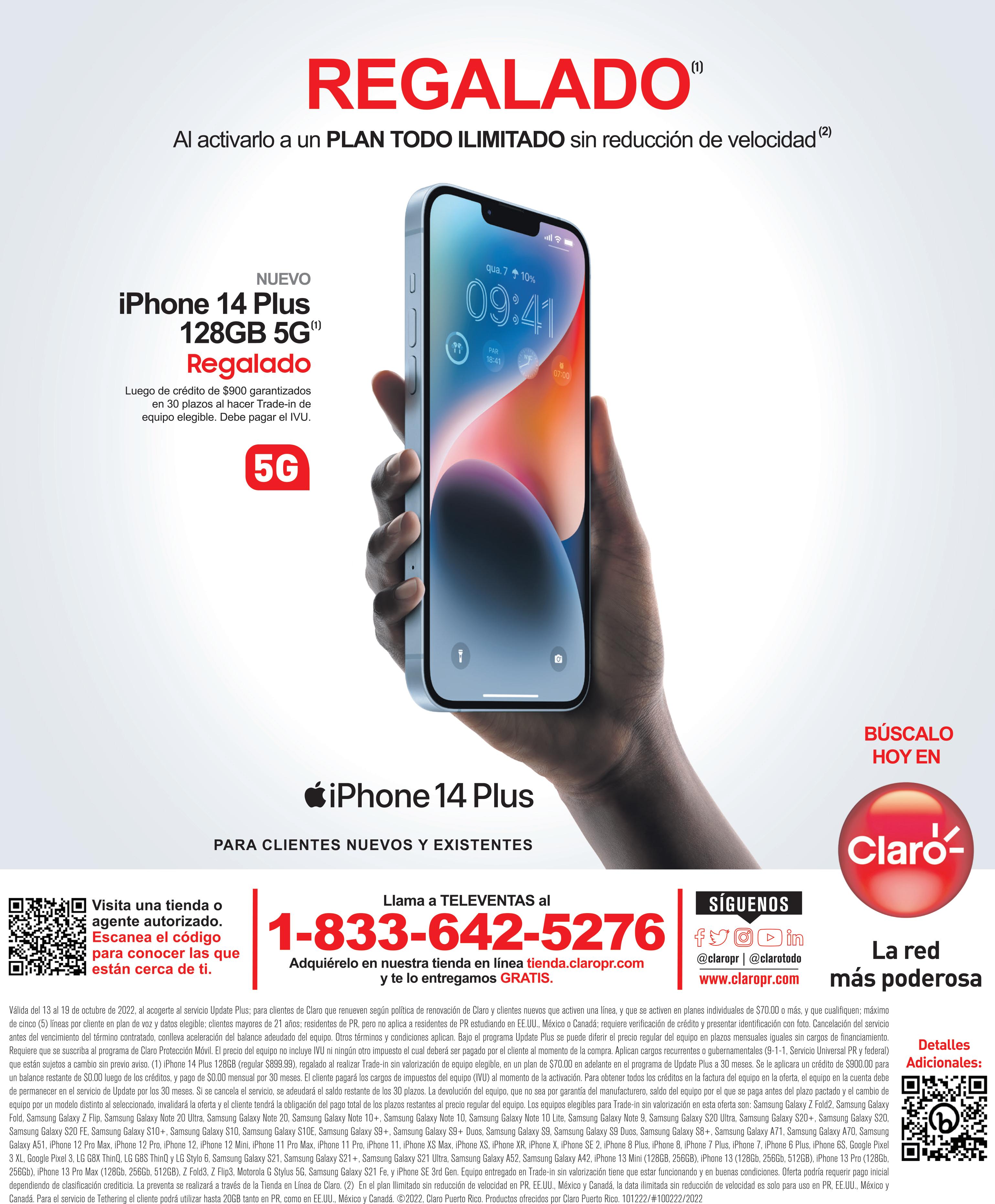 Llamadas a $0.25/min. Cargos adicionales aplican en destinos no incluidos; ver www.t-mobile.com para los destinos incluidos (sujetos a cambios, a discreción de T-Mobile). Requiere plan pospago y equipo elegibles. + Impuestos. Uso puede estar sujeto a impuestos en algunos países. Las llamadas desde países Simple Global, incluyendo llamadas por Wi-Fi, son a $0.25/min. (no hay cargos en llamadas por Wi-Fi a los EE. UU., México y Canadá). Llamadas y mensajes de texto son para la comunicación entre dos personas. La comunicación a números con precios premium (por ej. números 900, de entretenimiento, de líneas de ayuda, etc.) no está incluida. Cobertura no disponible en todas las áreas; no somos responsables de las redes de nuestros socios. Velocidades estándar aprox. de 256 Kbps. No es para uso internacional extendido; debes residir en los EE. UU. y tu uso primario ocurrir en nuestra red de los EE. UU. Equipo debe estar registrado en nuestra red de los EE. UU. antes de usarse internacionalmente. Control de la red: el servicio puede ponerse lento, suspenderse, cancelarse o restringirse por mal uso, uso anormal, interferencia con nuestra red, o con nuestra capacidad para brindar un servicio de calidad a otros usuarios, o por uso inmoderado de roaming. Uso en el equipo tiene mayor prioridad que el uso mediante enlace, lo cual puede resultar en velocidades mayores para la data usada en el equipo. Sujeto a los Términos y Condiciones (incluyendo cláusula de arbitraje) de T-Mobile® disponibles en www.t-mobilepr.com. T-Mobile, el logotipo de la T, Magenta y el color magenta son marcas comerciales registradas de Deutsche Telekom AG. ©2022 T-Mobile Puerto Rico, LLC. ACTÍVATE en TIENDAS o llama al 1-800-TMOBILE SINPAGARMÁSCONECTAPORELMUNDO París, Francia Madrid, España INTERNET Y TEXTOS ILIMITADOS SIN COSTO ADICIONAL en + destinos unajevaconesclerosis Karla Ortíz @unajevaconesclerosismultiple Disponible en todos nuestros planes Magenta® 5 < EL VOCERO DE PUERTO RICO > JUEVES, 13 DE OCTUBRE DE 2022