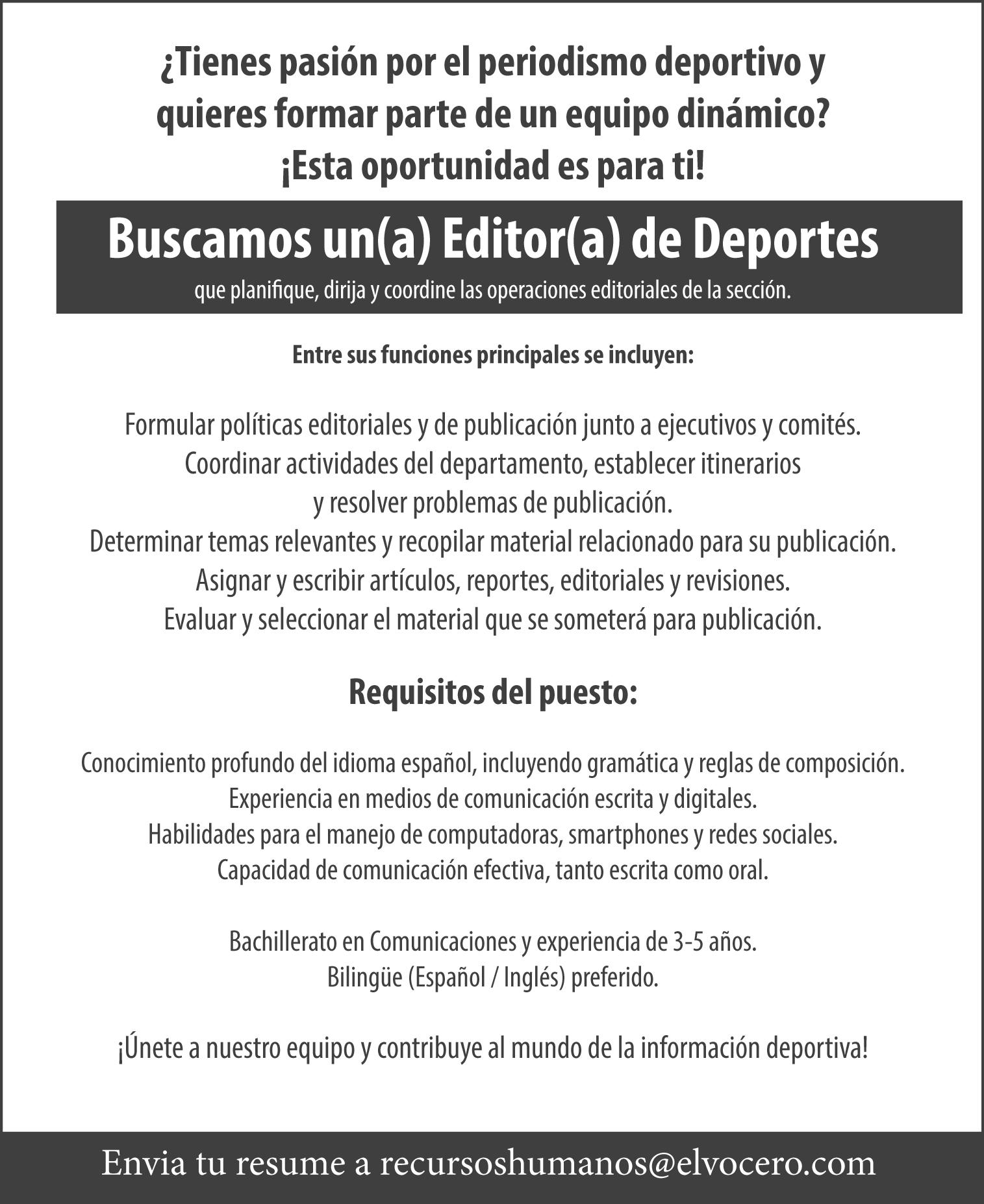 • Conocimiento profundo del idioma español, incluyendo gramática y reglas de composición. Bilingüe (Español/ Inglés) preferiblemente.