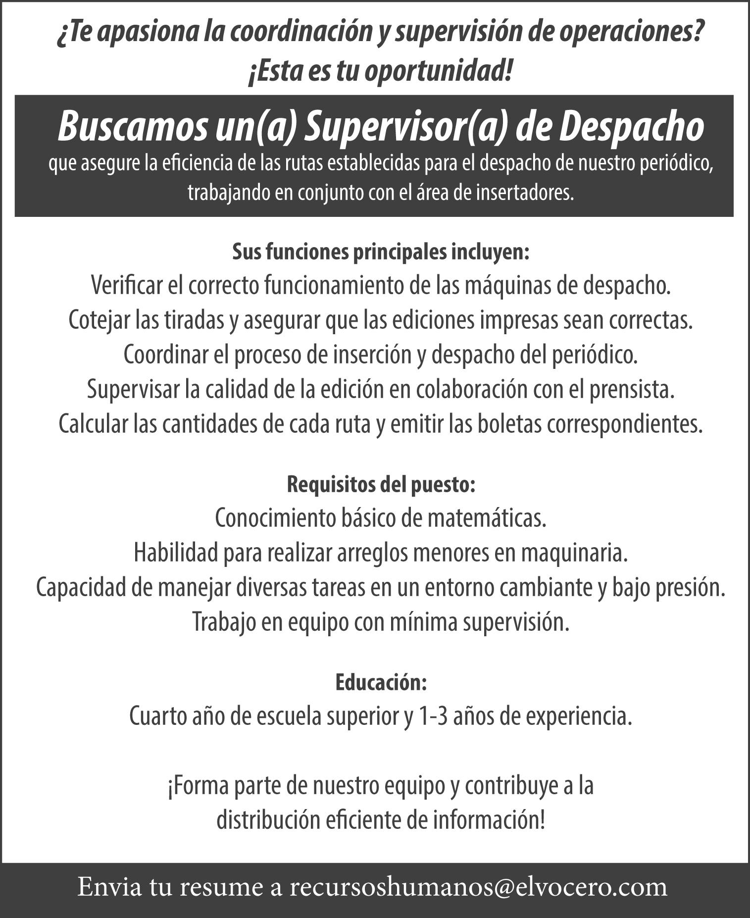 Asegura la eficiencia de las rutas establecidas para el despacho de nuestro periódico, trabajando en conjunto con el área de insertadores.
