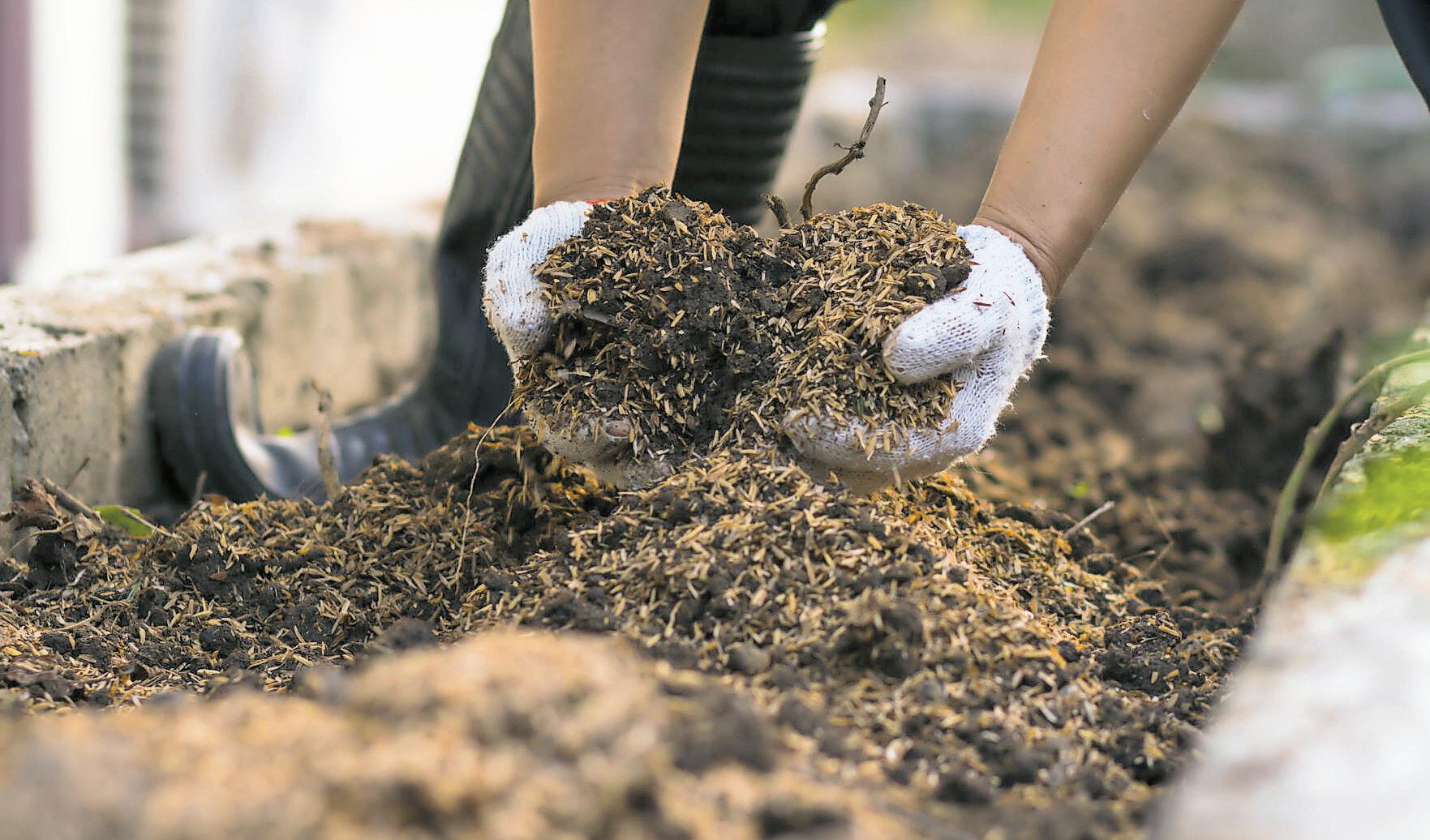 bono, con capas de materia fresca, que aporta nitrógeno, ambos componentes esenciales para el crecimiento y desarrollo de las plantas. Luego, cada tres o cuatro semanas, voltean el material.