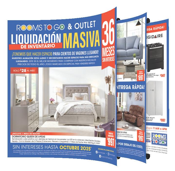 *No se puede aplicar 2 ofertas a un mismo artículo. (1) El financiamiento desde 0% de interés hasta 72 meses es a través de financiamiento propio (Berríos). La tasa de interés y el APR se determinan a base de la puntuación de crédito. Oferta para préstamos a un término de repago de 42, 48, 50, 60 y 72 meses a un 0% APR con crédito (0,0,0) cantidad mínima a financiar de $3,500.00. Otras tasas de interés y APR podrían aplicar. Tasa base APR desde 5.95% hasta 34.95%. Sujeto a aprobación de crédito y a los parámetros establecidos por Berríos. Ciertas restricciones aplican. (2) Para financiamiento con Synchrony ver los detalles en la tienda. (3) Descuentos aplican a toda la mercancía, excepto a mercancía en especial ni en liquidación, ni al financiamiento con Synchrony. (4) La garantía es a través del fabricante Simmons. (5) Las ofertas anunciadas no pueden ser combinadas con otras ofertas. Recogido de mercancía será en el Centro de Distribución Carr. 172 Km. 49.7 Bo. Bayamón, Cidra. Mercancía exhibida no incluye accesorios ni mattress. Precio del producto regular marcado es desde $49.00 hasta $4,999.00, y especial desde $46.00 hasta $4,800.00. Se requiere una (1) identificación con foto vigente, un recibo de luz o de agua reciente y evidencia de ingresos reciente. Oferta válida del 28 de octubre al 2 de noviembre de 2022 y la misma está sujeta a cambios y otros términos y condiciones o hasta que se vendan los artículos disponibles. OPCIONES DE FINANCIAMIENTO PARA TODOS LOS PRESUPUESTOS BUSCA NUESTRO SHOPPER O R berriostedamas.com Nada que comprar para participar. El cupón de participación debe contener exclusivamente la información de la persona según consta de la orden de compra. La Promoción/Sorteo dura del 27 de octubre hasta el 30 de noviembre de 2022. Puede participar cualquier persona mayor de 21 años de edad, residente legal del Estado Libre Asociado de Puerto Rico. Para más detalles, restricciones y método de participación gratuita ver reglas oficiales en berriostedamas.com/gana. Auspician Whirlpool, Maytag, Samsung, LG y Simmons - Puerto Rico. COMIENZAN LOS ESPECIALES EN EL ¡APROVECHA 14 DÍAS DE OFERTAS! COM ¡PODRÍAS GANAR 1 DE 2 AUTOS HÍBRIDOS! CON CUALQUIER COMPRA PARTICIPAS, CR V EX L HY BRID 2 022E X B 02 2 EL AUSPICIAN: ACCORD S POORRT H YBRID 20 22D Y 2 70” $845 Mod. UN70TU7000BXZA A090455 LED TV 70” 4K, Crystal UHD Smart S7 Bajo Precio $998 Ahorras $153 58” $595 Mod. UN58AU7000PXPA A091858 LED TV 58” 4K, UHD, Smart S7 Bajo Precio $698 Ahorras $103 A 65” $995 Mod. QN65Q60AAFXZA A087436 QLED TV 65” 4K, UHD, Smart, AirSlim Bajo Precio $1,198 Ahorras $203 65”43” $365 Mod. 43UP7500PSB A092089 LED TV 43” 4K, UHD, Smart, THINQ Bajo Precio $498 Ahorras $133 $765 Mod. 65UP7500PSF A090913 LED TV 65” 4K, UHD, Smart, THINQ Web OS 60Hz Bajo Precio $898 Ahorras $133 $725 Mod. 60UP7700PSB A089855 LED TV 60” 4K, UHD, Smart, THINQ Web OS 60Hz Bajo Precio $868 Ahorras $143 60” $1,495 Mod. WRS321SDHZ A075607 Nevera 21’ Stainless Steel Side by Side Ice Maker Bajo Precio $1,748 Ahorras $253 $1,665 Mod. WRS325SDHV A079175 Nevera 25’ Black Steel Side by Side, Ice Maker Bajo Precio $1,898 Ahorras $233 $1,625 Mod. WRF560SEHV A087817 Nevera 20’ Black Steel, French Door, Ice Maker Bajo Precio $1,848 Ahorras $223 $1,895 Mod. RF28T5001SR A085141 Nevera 28’ French Door Stainless Steel, Ice Maker Bajo Precio $2,148 Ahorras $253 $2,545 Mod. RS22T5561SR A080193 Nevera 22’ Side by Side, Hub Stainless Steel, Ice Maker Bajo Precio $2,898 Ahorras $353 OFERTA DEL REYD DE $2,795 Mod. RF27T5501SR A085139 Nevera 27’ French Door Stainless Steel, Hub Ice Maker Bajo Precio $3,198 Ahorras $403 OFERTA DEL REYD DE $835 Mod. NX52T7322LS A088437 Estufa de gas 30” Silver 5 quemadores Bajo Precio $948 Ahorras $113 $1,265 Mod. NE63A6711SS A087541 Estufa eléctrica 30” Air fryer, Smart y 5 quemadores Bajo Precio $1,448 Ahorras $183 $745 Mod. WFG320M0BS A062280 Estufa de gas 30” Stainless Steel Bajo Precio $848 Ahorras $103 Disponible negra A079523 por $795 o *APLICA A TODA LA MERCANCÍA EN ESPECIAL Y EN LIQUIDACIÓN. VÁLIDO DEL 27 DE OCTUBRE HASTA EL 9 DE NOVIEMBRE DE 2022. 5% DE DESCUENTO ADICIONAL AL COMPRAR CASH * **APLICA SOLAMENTE AL FINANCIAMIENTO DE BERRÍOS. VÁLIDO DEL 27 DE OCTUBRE HASTA EL 30 DE NOVIEMBRE DE 2022. HASTA 72 MESES DE FINANCIAMIENTO ** 5 < EL VOCERO DE PUERTO RICO > VIERNES, 28 DE OCTUBRE DE 2022