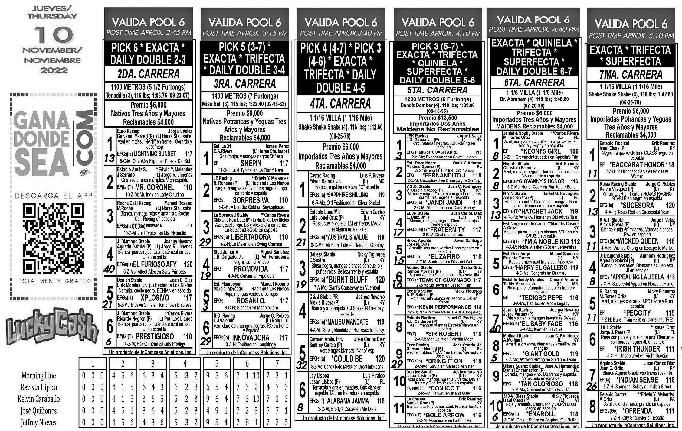 Dependerá mucho de cuán firme se presente de su condición física. Por tal motivo lo acompañamos en el cuadro con Lightning Sunset, del que esperamos gran labor en las manos de Giovani Merced y Xplosivo, que es de los de mejor opor tunidad.