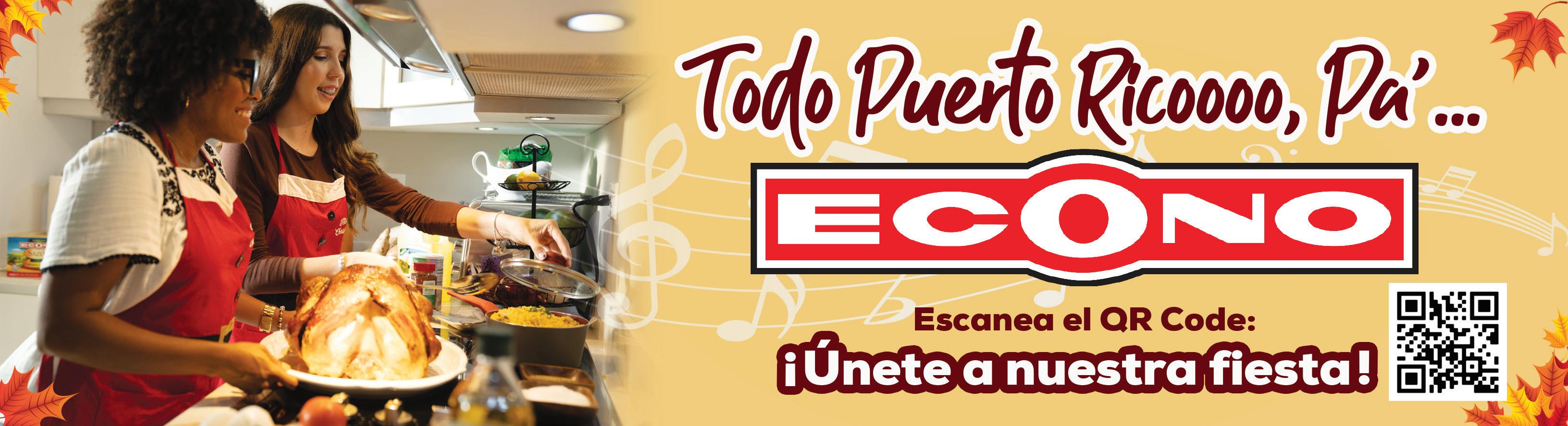 Mini Jamón Serrano Nico De España Deshuesado, Caja de 2.2 lbs. aprox. Kit incluye cuchillo y picador Reg. $39.99 c/u Cerveza Coronita Extra Caja de 12 bots. de 7 oz. Reg. $13.99 Vino Izadi Reserva Bot. 750 ml. Reg. $14.99 Vino Santiago Ruiz Albariño Bot. de 750 ml. Reg. $20.99 Vodka Grey Goose Variedad, SVT** Bot de 750 ml. Reg. $36.99 c/u 998 Luca Paretti Prosecco o Rose, SVT** Bot. de 750 ml. Reg. $12.99 c/u Dewar’s Caribbean Smooth 8 Años Bot. de 750 ml. Reg. $24.99 Dewar’s 15 Años Bot. de 750 ml. Reg. $40.99 Dewar’s 12 Años Bot. de 750 ml. Reg. $29.99 Pernil de 7 lbs. (antes de asar) 5 lbs. de Arroz Rico con Gandules 3 lbs. de Ensalada de Coditos 12 panecillos Pan Pepín 1 Bizcocho de Vainilla o Chocolate 2 Coca-Cola o Sprite de 1.75 lts. Cena para 10 a 15 personas. 5995 7995Para más detalles comunícate con tu Deli Econo favorito. Pavo de 14 a 16 lbs. (antes de asar) 5 lbs. de Arroz Rico con Gandules 3 lbs. de Ensalada de Coditos 12 panecillos Pan Pepín 1 Bizcocho de Vainilla o Chocolate 2 Coca-Cola o Sprite de 1.75 lts.