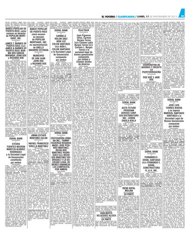 EL VOCERO / CLASIFICADOS / LUNES, 11 DE NOVIEMBRE DE 2013 RP-251 ESTADO LIBRE ASOCIADO DE PUERTO RICO TRIBUNAL DE PRIMERA INSTANCIA Sala de San Juan