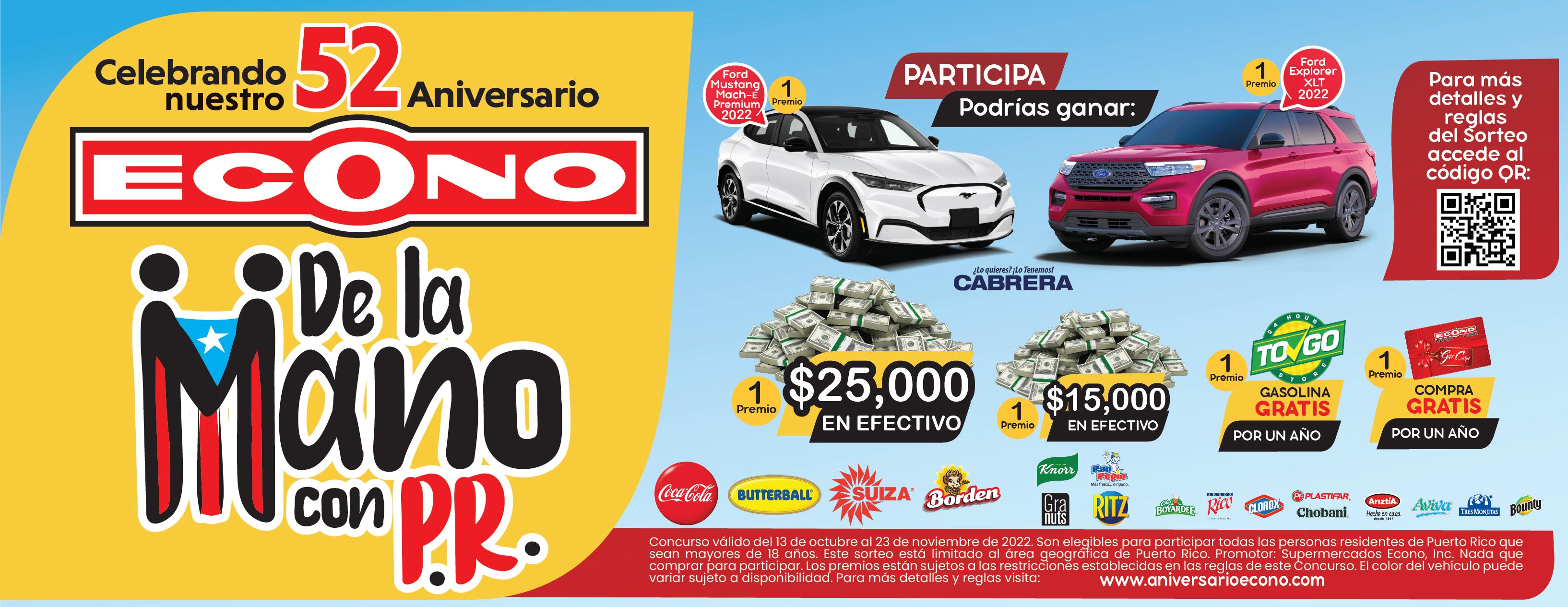 *Límite de 6 env. por cliente por compra. *Límite de 8 pqtes. por cliente por compra. Lácteos Congelados *Límite de 8 cajas por cliente por compra. Jugos de China HomeMaker Variedad, SVT** Env. de 59 oz. Reg. $3.69 c/u Tocineta ECONO Regular o Low Sodium, SVT** Pqte. de 12 oz. Reg. $4.99 pqte. Queso Ricotta Borden Variedad, SVT** Env. de 15 oz. Reg. $4.99 c/u 398 c/u Borden Crumbled Variedad, SVT** Env. de 4 oz. Reg. $3.99 c/u Esp. $3.50 c/u 2X $7 2X $5 Whipped Cream Reddi Whip Variedad, SVT** Env. de 6.5 oz. Reg. $4.19 c/u Esp. $3.50 c/u 2X $7 Flanes Cedó Variedad, SVT** Pqte. de 3 un. de 3 oz. Reg. $2.99 pqte. Esp. $2.00 pqte. 2X $4 Queso Crema Soft Philadelphia Variedad, SVT** Env. de 7.5 a 8 oz. Reg. $3.29 c/u Esp. $2.50 c/u 2X $5 Cortes Frios Oscar Mayer Deli Fresh Variedad, SVT** Pqte. de 7.5 a 9 oz. Reg. $5.99 pqte. 498 pqte. Jamón American Valu Variedad, SVT** Pqte. de 8 oz. Reg. $3.79 pqte. *No incluye pavo. 298 pqte. Mazorca Green Giant Congelada Pqte. de 6 un. Reg. $4.99 pqte. 298 pqte. Paletas de Mantecados Crunch Nestle Caja de 6 un. Reg. $6.99 c/u 548 c/u Bebidas Plus Variedad, SVT** Env. de 58 oz. Reg. $2.49 c/u Esp. $1.67 c/u 3X $5 Hamburgers Black Burger Pqte. de 1.5 lbs. Reg. $6.99 598 Jugo de China Suiza Premium Env. de 48 oz. Reg. $4.99 398 Hot Dogs Nathans Variedad, SVT** Pqte. de 12 oz. Reg. $6.99 c/u 398 c/u Pan Finest Pan Pepín Hawaiian Club o Brioche Pqte. de 24 o 25 oz., SVT** Reg. $3.99 c/u 328 c/u Mantequilla Brookfield Salted o Unsalted, SVT** Caja de 1 lb. Reg. $6.99 c/u 598 c/u Queso Blanco Playero Fresco / Pqte. de 5 oz. Reg. $3.49 pqte. Esp. $2.50 pqte. 2X $5 Queso de Bola Tierno Holandés Picado Reg. $5.99 lb. 498 lb. Pound Cake Sara Lee All Butter Env. de 10.75 oz. Reg. $4.99 398 Vegetales Congelados ECONO Variedad, SVT** Clear Bag de 3 lbs. Reg. $6.99 c/u 598 c/u Mrs. Freshley’s Pecan Twirl 8 oz., Honey Bun 10.5 oz., Swiss Roll o Powered Sugar Mini Donut 10.5 oz. 12 oz., SVT** Reg. $3.29 c/u 268 c/u Panes Nature’s Own Variedad, SVT** Pqte. de 20 oz. Reg. $4.09 pqte. 328 pqte. Mini Corn Bread ECONO Caja de 16 oz. Reg. $5.99 398 Mantecados Breyers Variedad, SVT** Env. de 48 oz. Reg. $8.59 c/u 648 c/u Mozzarella Sticks Farm Rich Caja de 24 oz. Reg. $9.99 898 Queso Parmesano Borden Env. de 3 oz. Reg. $2.49 c/u Esp. $2.00 c/u 2X $4 3X $5 2X $6 Quesos Rebanados Americano o Melts Borden Variedad, SVT** Pqte. de 12 oz. Reg. $4.39 pqte. 298 pqte. Planitas 8” Pan Pepín Mediana Variedad, SVT** Pqte. de 13 o 16 oz. Reg. $3.49 pqte. 298 pqte. Mantecados Magnum Variedad, SVT** Env. de 14.8 oz. Reg. $6.99 c/u 598 c/u *Límite de 9 env. por cliente por compra. Pretzel Kings Hawaiian Slider o Hamburger Buns Pqte. de 9 un. de 10.5 u 11 oz., SVT** Reg. $5.99 pqte. 498 pqte. Quesos Media Luna Borden Variedad, SVT** Pqte. de 8 oz. Reg. $3.49 pqte. Esp. $2.50 pqte. 2X $5 Pan para Hamburger, Hot Dog Pan Pepín o Hawaiian Dog Pqte. de 12 o 15 oz., SVT** Reg. $2.89 a $3.19 c/u 238 c/u Pan Club Pan Pepín Regular, Integral o Integral Blanco, SVT** Pqte. de 24 oz. Reg. $3.99 pqte. 318 pqte. Greek Yogurt Chobani Variedad, SVT** Env. de 5.3 oz. Reg. $2.39 c/u Esp. $1.67 c/u 398 298 pqte. c/u Quesos Deli o Palitos Borden Variedad SVT** Pqte de 6 oz. Reg. $4.49 pqte. Esp. $3.50 pqte. 2X $7 Bebidas Suiza Fruit China o Fruit Punch, SVT** Env. de 120 oz. Reg. $3.79 c/u Esp. $2.50 c/u Taquitos El Monterey Variedad, SVT** Pqte. de 20 a 20.7 oz. Reg. $11.99 pqte. 1098 pqte. Exclusivo 3 lbs. Salchichas de Pavo Butterball Polska Kielbasa o Smoked, SVT** Pqte. de 13 oz. Reg. $4.49 pqte. Esp. $3.00 c/u Quesos Rallados Borden Variedad, SVT** / Pqte. de 6 u 8 oz. *No Incluye Parmesano ni Three Cheese Blend Reg. $3.79 pqte. Esp. $2.50 pqte. 2X $5 Pizzas ECONO Variedad, SVT** Caja de 5.2 oz. Reg. $1.99 c/u Esp. $1.25 c/u Cortes Fríos de Pavo Butterball Smoked Ham Pqte. de 1 lb. Reg. $5.49 pqte. 448 pqte. Dutch Farms Cottage Cheese 1% ó 4% Variedad, SVT** Env. de 16 oz. Reg. $4.59 c/u Esp. $3.50 c/u 2X $7 Pie River Sweets Calabaza o Manzana Variedad, SVT** Caja de 17.6 oz. Bonus Pack solo en Calabaza Reg. $5.49 c/u 398 c/u Dutch Farms Half & Half Env. de 16 oz. Reg. $3.99 c/u 298 c/u Tostones o Amarillos ECONO Caja o Pqte. de 2 lb., SVT** Reg. $4.18 c/u Esp. $3.00 c/u 2X $6 20% More Calabaza Manzana Bizcochos Pepperidge Farm Variedad, SVT** Caja de 19.6 oz. Reg. $6.79 c/u 598 Pan Brioche Bakerly Bolsa de 17.64 oz. Reg. $5.99 498 Margarina Imperial Env. de 45 oz. Reg. $5.99 498 Margarinas I can’t believe it’s not Butter! Variedad, SVT** Env. de 15 oz. Reg. $4.99 c/u 398 c/u Margarina Country Crock Variedad, SVT** Env. de 15 oz. Reg. $3.99 c/u 298 c/u 4X $5