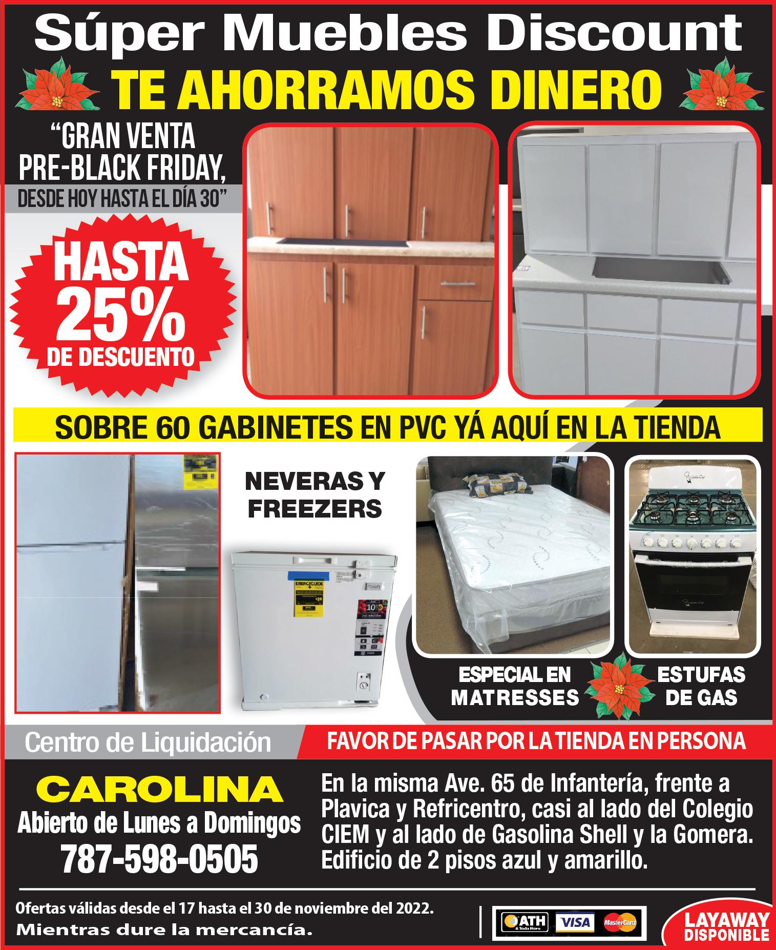 Galletas Beautiful Denmark Lata de 12 oz. Reg. $3.99 298 Panettone Maina Caja de 17.63 oz. Reg. $6.99 c/u 548 c/u Turrón El Romero Jijona o Alicante, SVT** Caja de 150 gr. Reg. $1.99 c/u Esp. $1.67 c/u 3X $5 Turrón de Maní El Picador Duro o Blando, SVT** Caja de 150 gr. Reg. $1.99 c/u Esp. $1.00 c/u Turrón Duro Maní Don Gonzalo Env. de 500 gr. Reg. $6.59 5X $5 Dulces Típicos Sabor Caribeño Env. de 7 oz. Reg. $2.99 c/u Esp. $2.50 c/u 2X $5 Pecan o Walnuts Nutty Natural Pecan Halves, Walnuts Chopped o Halves & Pieces, SVT** Pqte. 16 oz. Reg. $6.99 pqte. 598 pqte. Cranberries Secas Nutty Naturals Pqte. de 20 oz. Reg. $4.99 398 Maní Nutty Naturals Honey u Oil Roasted Salted, SVT** Pqte. de 16 oz. Reg. $3.19 pqte. 298 pqte. Árbol de Navidad Artificial 6 ft., Caja de 1 un. Reg. $39.99 2698 Base de Árbol de Navidad 1 un. Reg. $19.99 1598 Kit de Navidad para Cupcakes Caja de 48 pc. Reg. $3.99 228 Falda de Árbol de Navidad Rojo de 42”, 1 un. Reg. $13.99 c/u 898 c/u Falda de Árbol de Navidad Rojo de 36”, 1 un. Reg. $10.99 798 Corona de Navidad 1 un. Reg. $20.99 1898 Corona de Navidad Decoración de Berries, 1 un. Reg. $20.991498 Set Decorativo de Navidad Pqte. de 70 un. Reg. $19.99 1398 Bolas Decorativas de Navidad Variedad, SVT** Pqte. de 30 un. Reg. $12.99 c/u 898 c/u Parranda Kit Pqte. de 7 un. Reg. $23.99 1798 Platos o Servilletas de Navidad Variedad, SVT**, 1 un. Reg. $1.99 c/u Esp. $1.25 c/u 4X $5 Botella de Cristal Transparente, Diseños o Colores Variedad, SVT** Bot. 16 oz. / 1 un. Reg. $2.19 c/u Esp. $1.50 c/u 2X $3 Botella de Cristal De 25.36 oz. / 1 un. Reg. $2.19 c/u Esp. $1.25 c/u 4X $5 2X $4 2X $6 2X $6 Mazapan, Peladillas o Yema Tostada El Romero Variedad, SVT** Caja de 100 o 150 gr. Reg. $1.99 c/u Esp. $1.50 c/u 2X $3 Portabotellas Con diseño de Pantalón de Santa o Duende, SVT** / 1 un. Reg. $3.99 c/u Esp. $3.00 c/u c/u Maní Planters Salted, Honey Roasted o Low Salted, SVT** Lata de 12 oz. Reg. $4.19 c/u 338 c/u Postres Goya Tembleque, Majarete o Natilla, SVT** Caja de 3.2 a 3.5 oz. Reg. $1.19 c/u 88¢c/u Coquito Trigo Bot. de 750 ml. Reg. $11.99 c/u 1098 c/u Turrón de Almendra Suprema Don Gonzalo Blando o Duro, SVT** Env. 150 gr. Reg. $3.99 c/u 298 548 c/u c/u Inflable de Santa Claus Merry Christmas 6 ft. / 1 un. / Reg. $35.99 2698 Cortinas de Baño de Navidad 72 x 72, 1 un. Variedad de Diseños Reg. $9.99 c/u 698 Toallas de Mano de Navidad 16 x 28,Variedad de Diseños, 1 un. Reg. $9.99 c/u 798 Alfombras de Navidad 17 x 28 Variedad, SVT**, 1 un. Reg. $5.99 c/u 498 Árbol de Cristal de Navidad Blanco Con luces, 1 un. de 13 inch Reg. $13.99 998 Árbol de Cristal de Navidad Blanco Con luces, 1 un. de 10 inch Reg. $9.99 698 Luces de Navidad Led Variedad, SVT** Caja de 100 luces. Reg. $10.99 c/u 798 c/u Papel de Regalo de Navidad Variedad, SVT** Set de 5 Rollos Reg. $5.99 c/u 498 Árbol de Metal de Navidad con Luces 1 Caja de 18" Reg. $9.99 698 Árbol de Metal de Navidad con Luces 1 Caja de 12" Reg. $7.99 498 Alfombras Memory Foam de Navidad 17 x 24 Variedad, SVT**, 1 un. Reg. $9.99 c/u 798 Inflables Piggy o Santa Claus, SVT** Caja de 1 un. de 4 ft. Reg. $23.99 c/u 1798 c/u Splenda 6 ft. c/u c/u c/u c/u c/u c/u *No Incluye Baterías *No Incluye Baterías *No Incluye Baterías *No Incluye Baterías Estrella para Árbol de Navidad 1 un., Con Luz Variedad, SVT** Reg. $5.99 c/u 498 Luces Decorativas Variedad, SVT**, 1 un. Reg. $4.99 c/u Esp. $3.00 c/u *No Incluye Baterías Bandejas de Aluminio Heavy Kitchen 1 un. / Ovalada o Rectangular, SVT** Reg. $1.99 c/u Esp. $1.25 c/u 4X $5 Bolsas de Hornear Pavo Reynolds Caja de 2 un. Reg. $2.99 c/u Esp. $2.00 c/u Luces Led de Estrellas Blancas o Multicolor, SVT** / 1 caja Reg. $17.99 c/u 1398 Bolsa de Nomo para Botellas 1 un. Reg. $2.29 c/u Esp. $1.67 c/u 3X $5 Jarra de Cristal de Navidad Con Tapa y Sorbeto, 1 un. Reg. $2.39 c/u Esp. $1.67 c/u 3X $5 6 ft. 4 ft.