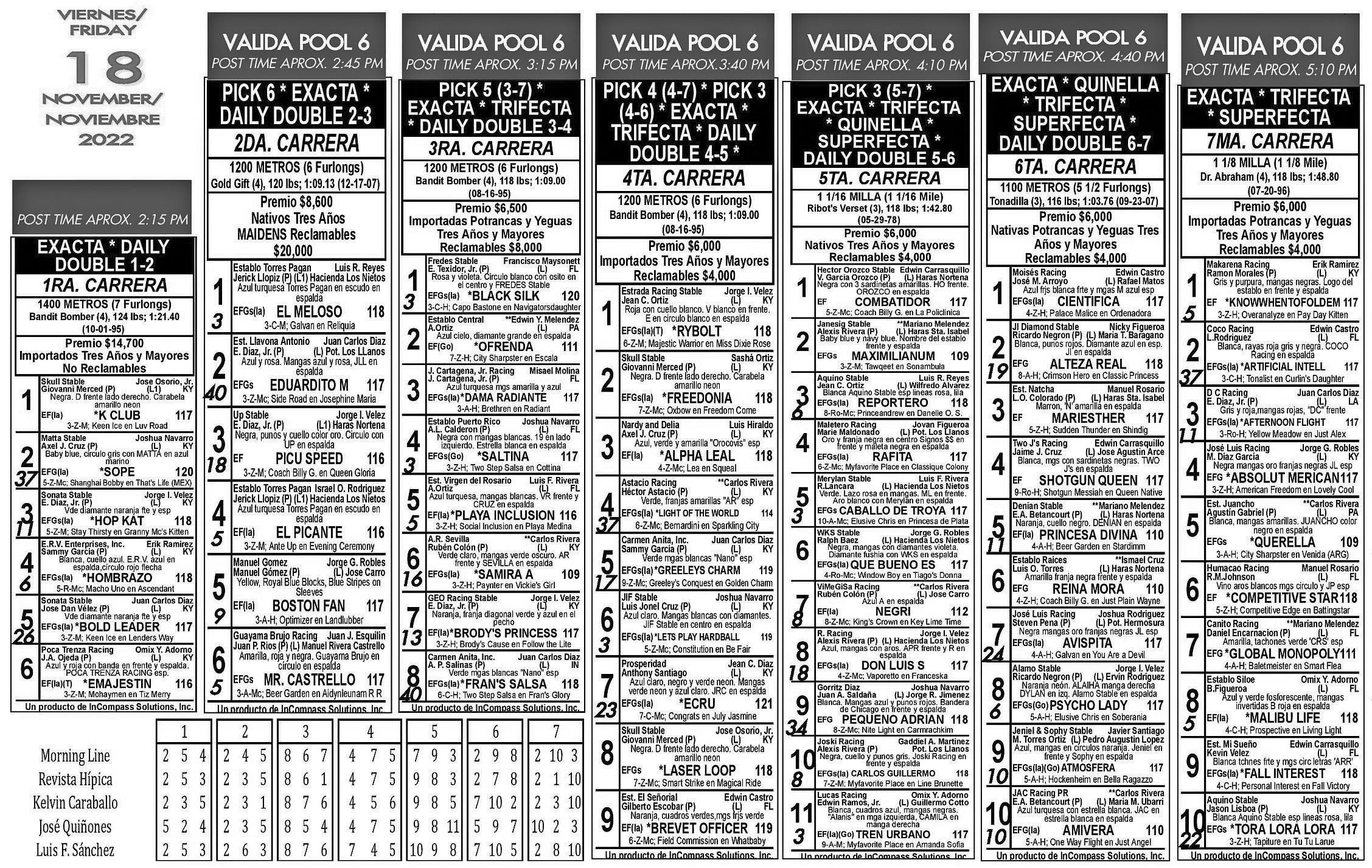En el resto de las carreras válidas para el Pool, en la tercera carrera nuestra re comendación incluye como favorita a Fran’s Salsa, que cuenta con factores muy favorables entre ellos la po sición de salida y la monta de Díaz.