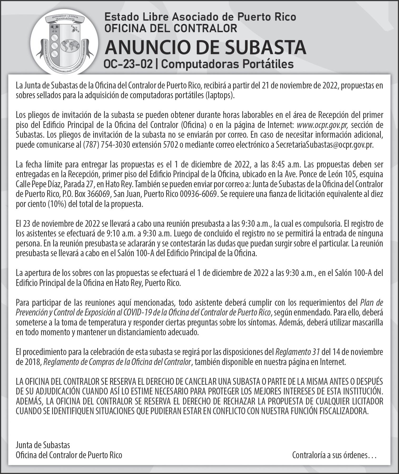 También deben cumplir con la Ley 72 de 2019, que establece que cualquier trabajo que contraten las agencias de gobierno y cor poraciones públicas, tiene que contratar has ta 20% con empresas de la Isla.