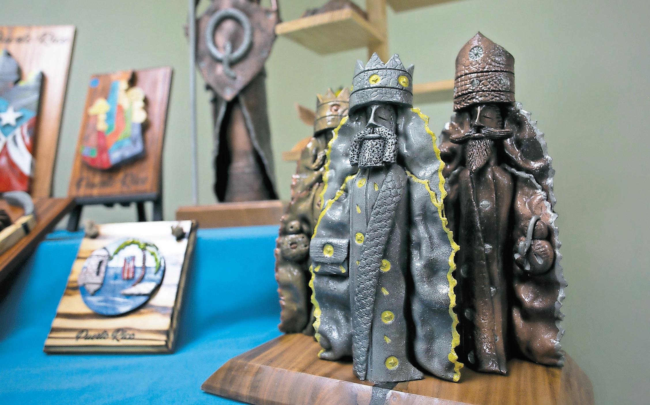Alejandra M. Jover Tovar >ajover@elvocero.comUn Quijote de barro se alza imponente en medio de una mesa cubierta por un mantel. A su alrededor, delicados pájaros tallados en madera, acompañados de estampas de los Tres Reyes Magos, réplicas de puertas del Viejo San Juan con la bandera de Puerto Rico y una escena playera componen la muestra de las obras de arte que producen las manos de Joseph Villalobos Marcano, cada una más colorida y detallada que la anterior.