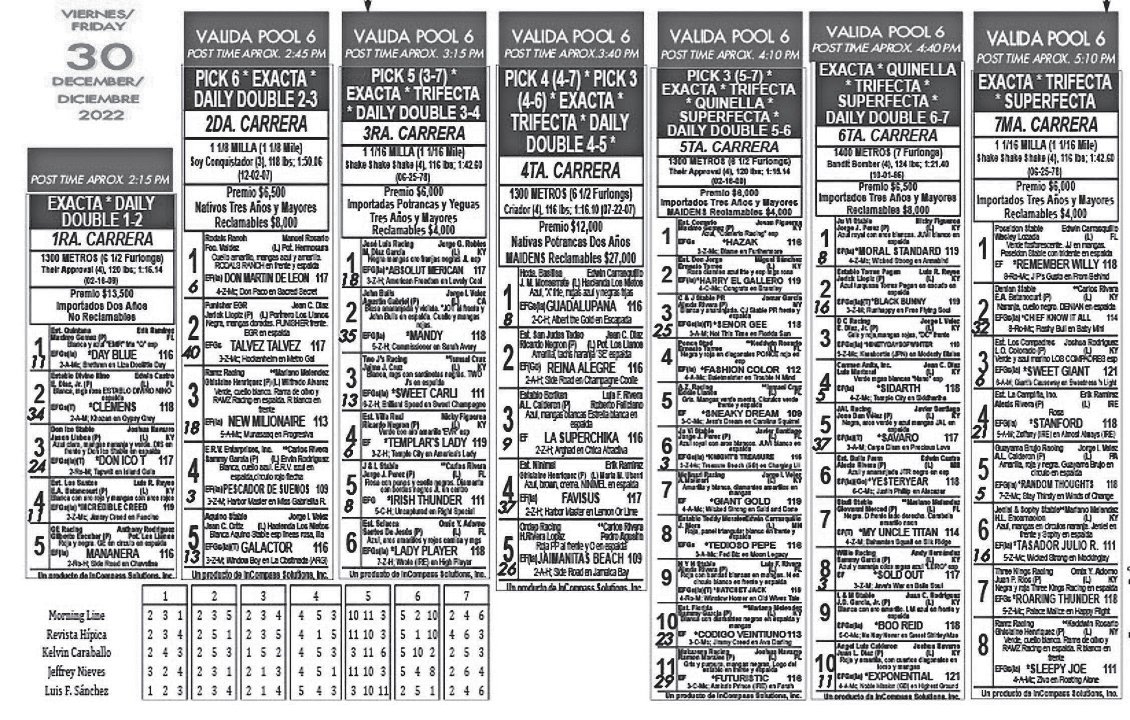 Hoy se llevará a cabo la penúltima jornada de carreras locales del año en el hipódromo Camarero con un programa de siete eventos, seis de ellos válidos para la jugada principal del pool de seis.