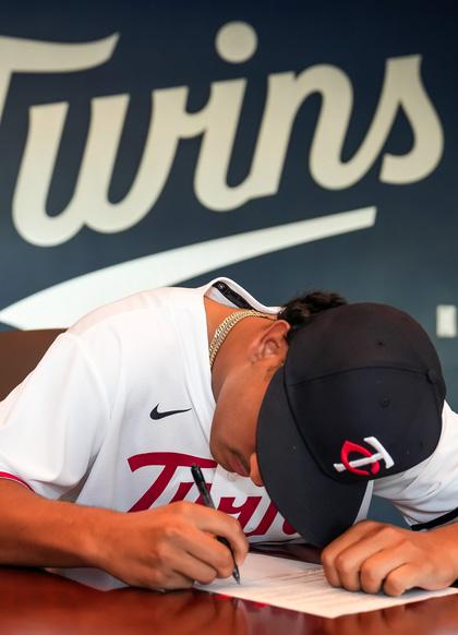 ALM e N te Q u I ero , e N u N o S tre S AÑ o S, YALa meta de Charlee es debutar en las Grandes Ligas en 2026. >Suministrada Soto estampa su firma en el contrato con los Mellizos. >Suministrada El lanzador fue escogido en el turno 34 del pasado sorteo de novatos. >Suministrada
