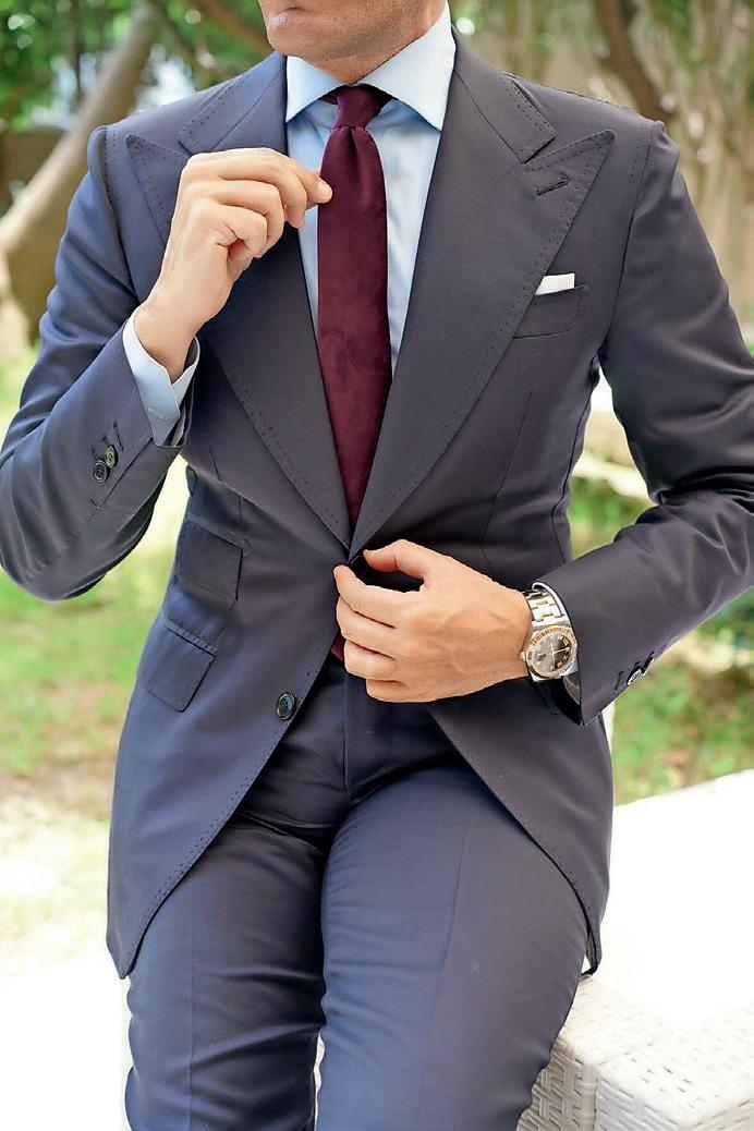 Una simple corbata puede ser el detalle que haga la diferencia en tu atuendo. El color vino o bordeaux es excelente para acentuar looks ejecutivos.
