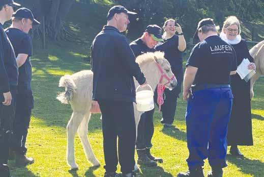 Sognepræst Bodil Bolding gør klar til at navngive føllet ”Daisy af Hammer Bakker”.