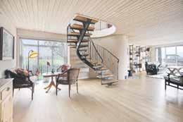 Michael Holm, Tommy Heby og Thomas Kold på trappen i den nye tilbygning. Trappens stålkontruktion er lavet af Holm El & VVS’ egen smed.