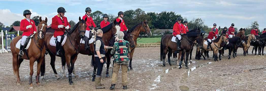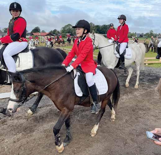 Et flot skue Lørdag var 65 heste og deres ryttere - klædt i røde jakker, hvide bukser og sorte støvler mødt op til morgenparole på Stald Torpegård i Sulsted.