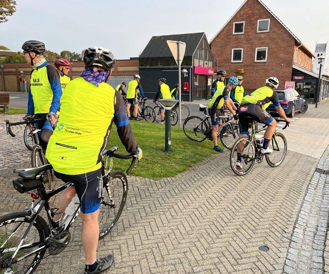 - Nu får vi ”rygmærker” med Sparekassen Danmark – Fonden Hals’ logo bag på vestene, og samtidig bliver vi mere synlige for andre trafikanter, når vi cykler ud på vejene.