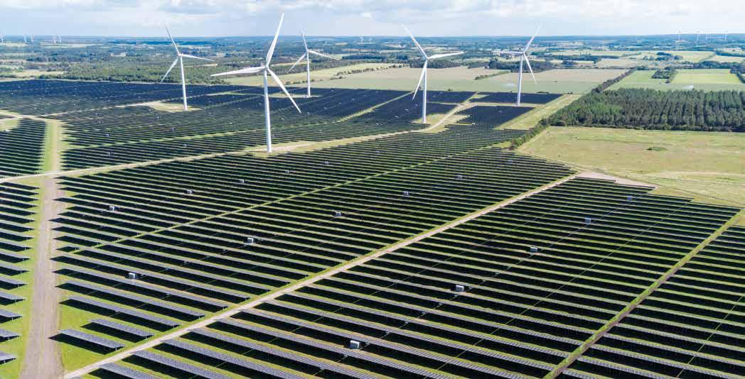 Et eksempel på en solcellepark i et vindmølleomåde: Det er et af landets største og ligger ved Herning.