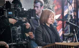 En overrasket Susanne Dige kikker ud af sit vindue og opdager en stor flok dagplejere med deres børn - og Dannebrogsflag.