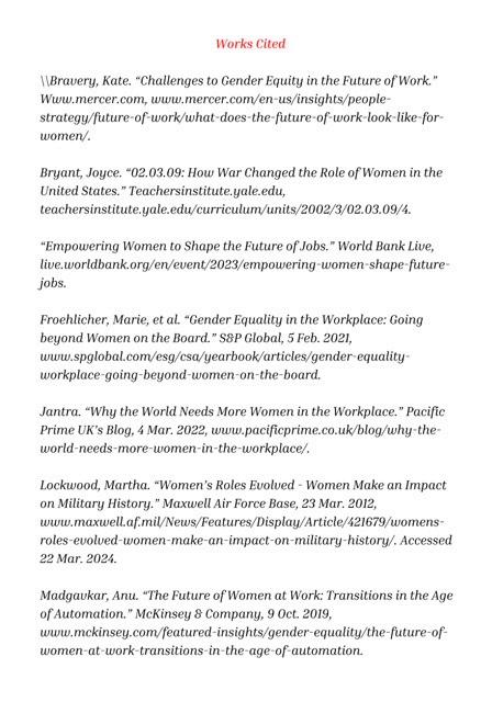 Women’sroleinboththeworkforceandthemilitaryhaschangedalotinthe pastfewdecadesleadingtoincreasedsocialandprofessionalequalityand inclusivity. Byincreasingthenumberofwomenaswellastherangeofactivities thatfemalesonceperceivedasrestrictedtomen, thesewomenareactively challenginguniforms, breakingdownborders, andfundamentallychanging genderperceptionstoincorporatetheentiretyofsociety Nevertheless, positivechangestowardwomen'sequalityintheworkplaceandthearmyhave occurred, butwomenarestillgoingthroughdiscriminationandhurdlesintheir careerandmilitaryperformance, whichshowsthedifficultyofgenderequality andtransformationalchangeevennow
