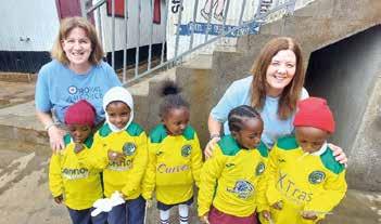 Gail Moore and Julie Chadburn distributing Wallsend Boys Club kit at the Starkids Academy in Githorogo