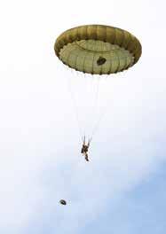 intense ground training, which teaches all about the British Low Level Parachute (LLP), how to safely conduct a parachute landing, the drills on board the aircraft, the drills to conduct while under canopy, malfunction recognition and emergency procedures. This is followed by the practical element and carrying out four descents from 1,000ft.