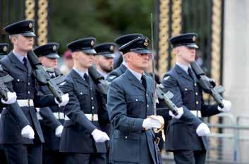 troops on to perform the Sunset Ceremony. Once the parade had concluded we returned to the safety of the hangar, as it was still raining heavily, I thanked the troops for all their hard work during the run up to the parade and also for performing so well in atrocious conditions. We were all soaked through and the odour of wet No1’s was quite overpowering. During this period, I also informed the troops of our late Queen’s passing and the look of astonishment was clearly apparent on all of their faces as I told them, this would be a memory which they will always recall and remember vividly.