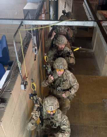 2623 Squadron undertook Close Quarter Battle (CQB) training at the Complex Air Ground Environment (CAGE) facility at RAF Honington. The CAGE is an essential resource for preparing personnel for global operations, offering a realistic setting to train for operating in challenging, high-pressure, and demanding environments.