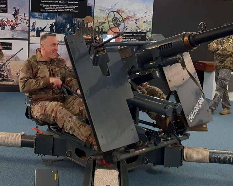 The day started with a guided tour of the RAF Regiment Heritage Centre where the history and development of the RAF Regiment was explained, including a handson demonstration of historic anti-aircraft weapon systems. Following a presentation by WO Gaz Elliott, the RAF Regiment Corps WO on current sphere and method of RAF Regiment operations, the 3 CMSgts were taken to a number of engineering areas on unit, discussing advances in RAF engineering activities and automation and digitisation of processes, notably within the station armoury.