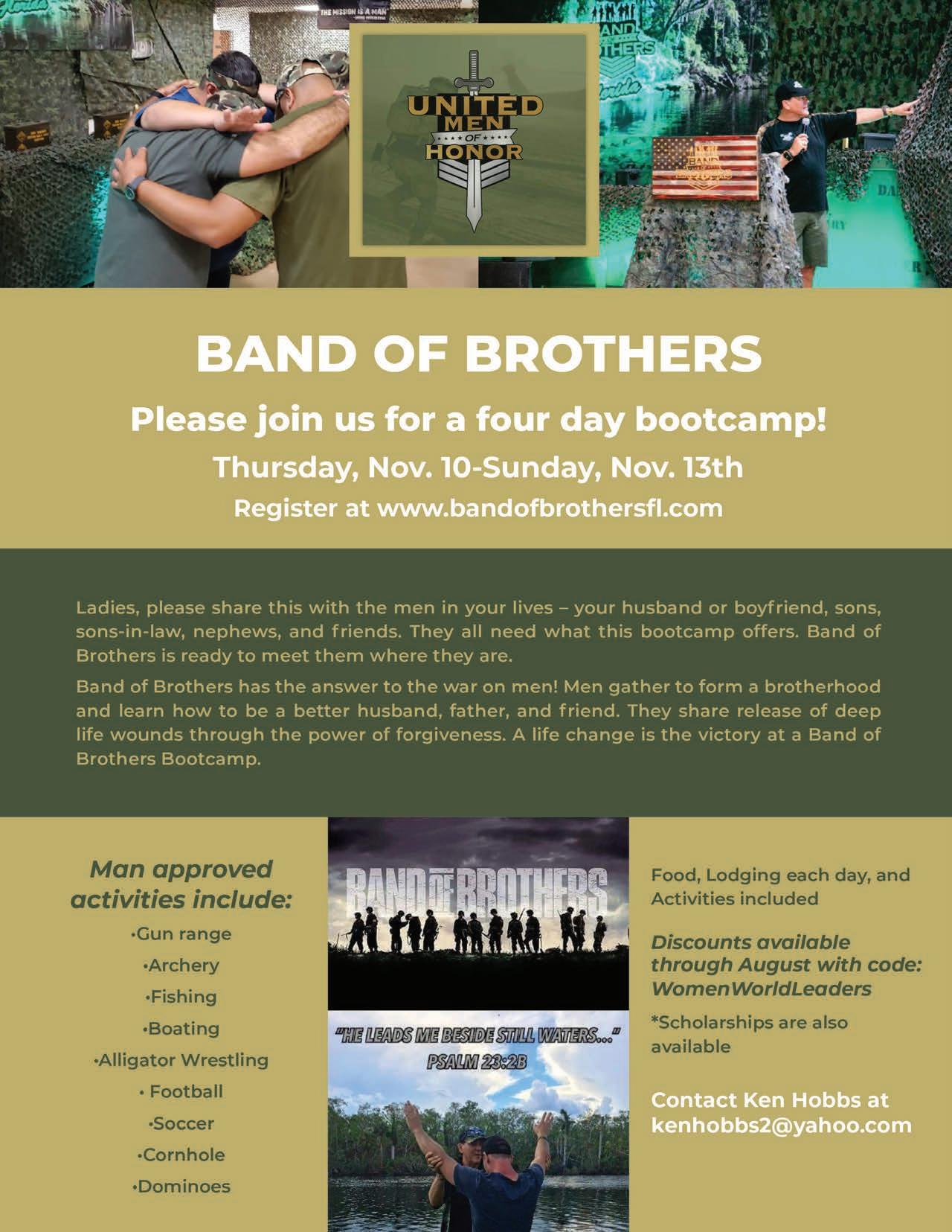 Band of Brothers has the answer to the war on men! Men gather to form a brotherhood and learn how to be a better husband, father, and friend. They share release of deep life wounds through the power of forgiveness. A life change is the victory at a Band of Brothers Rally Point.