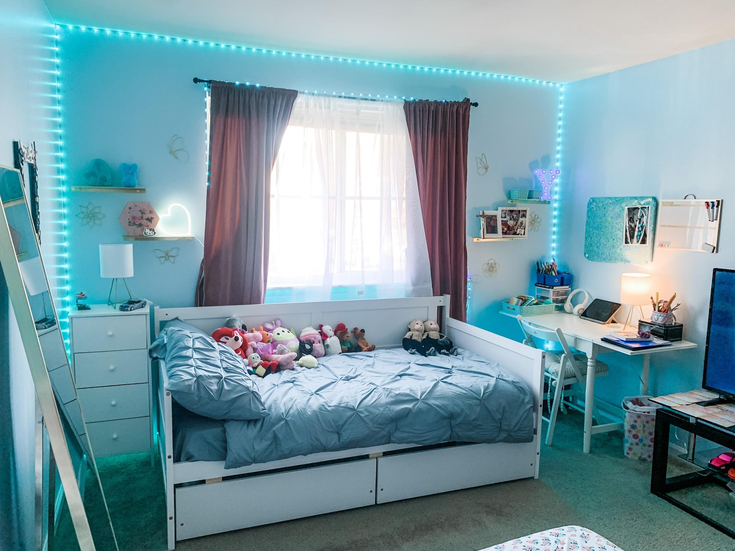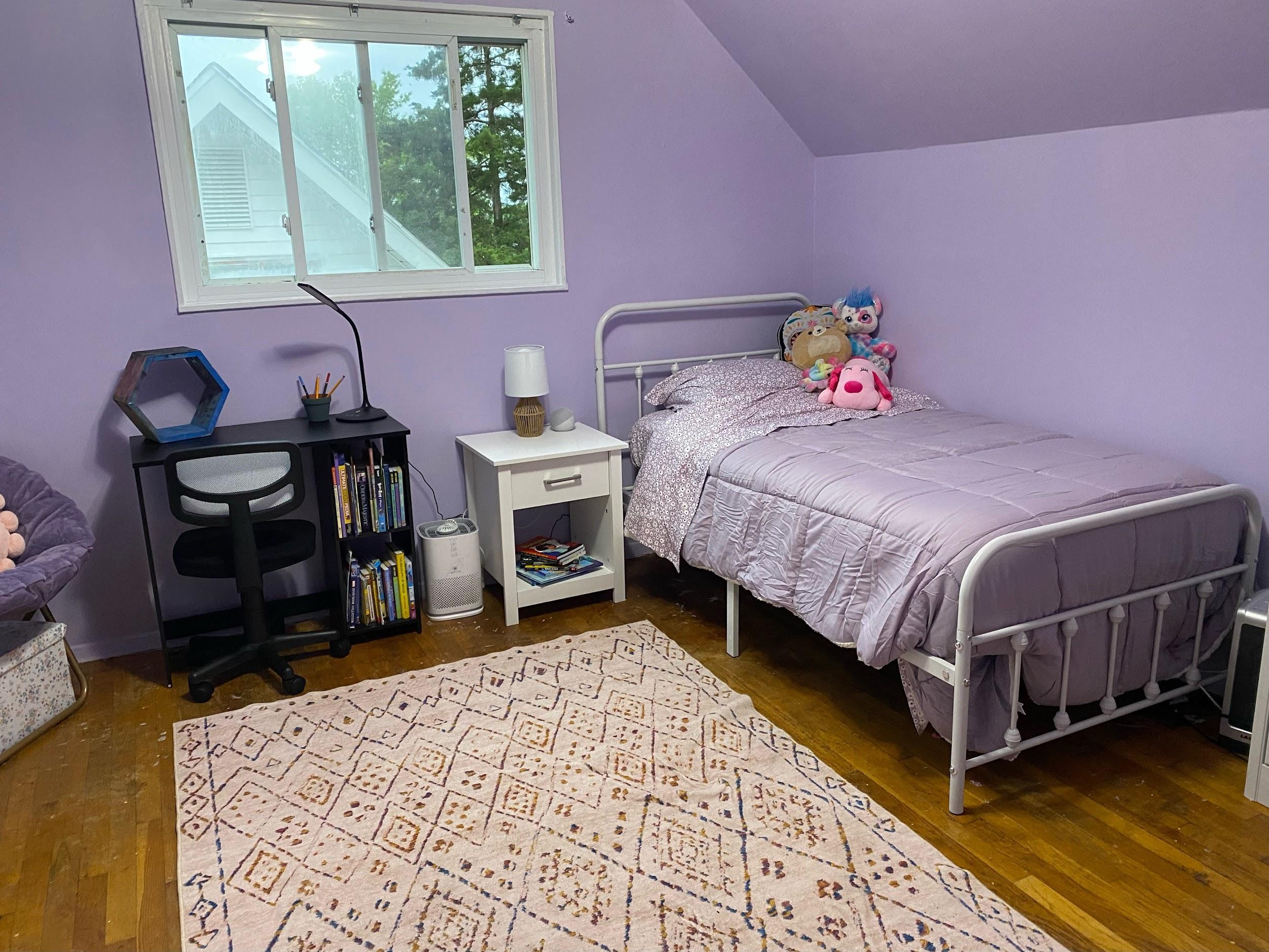 Maddie literally jumped for joy when she saw her brand new bedroom!