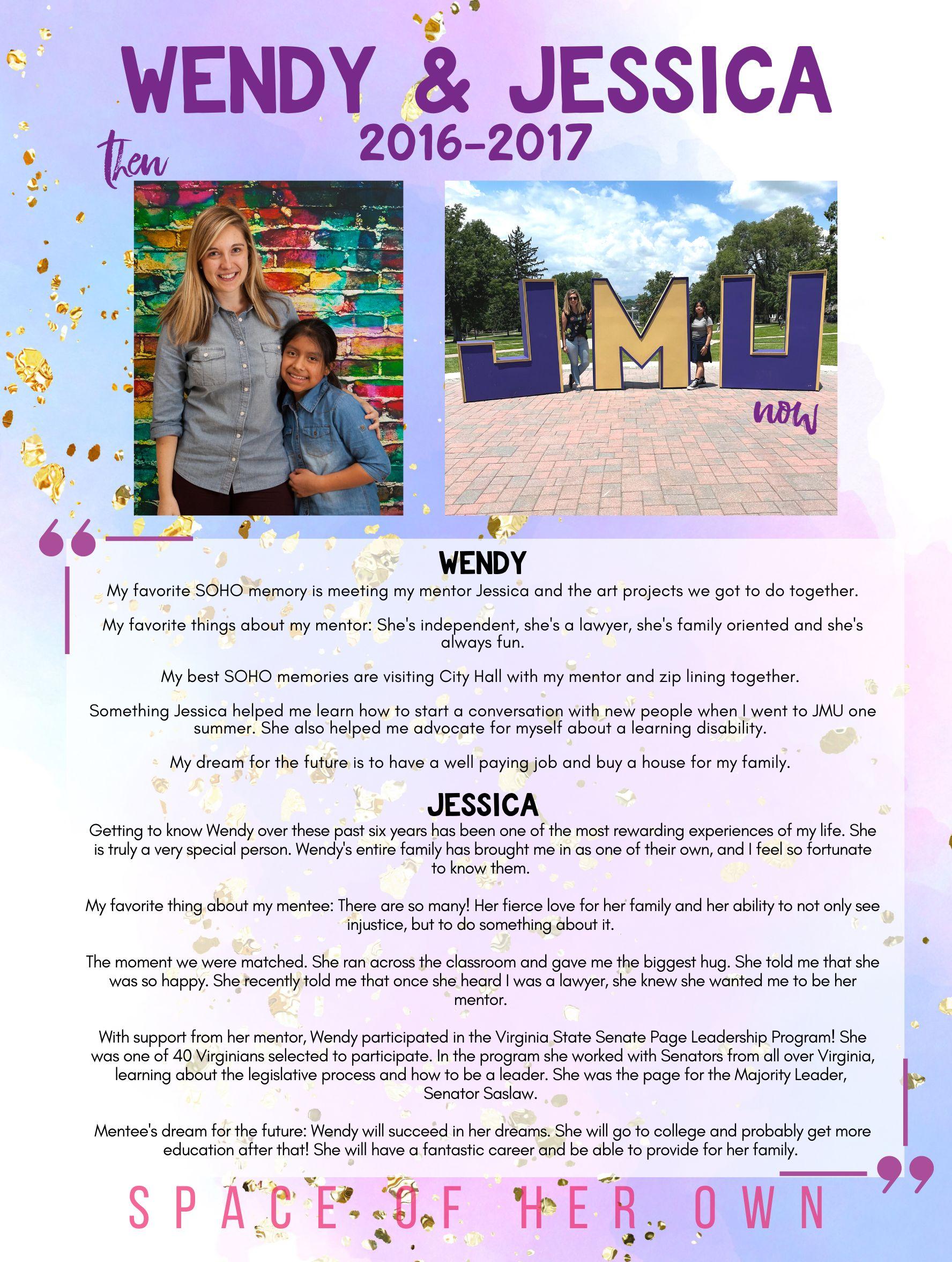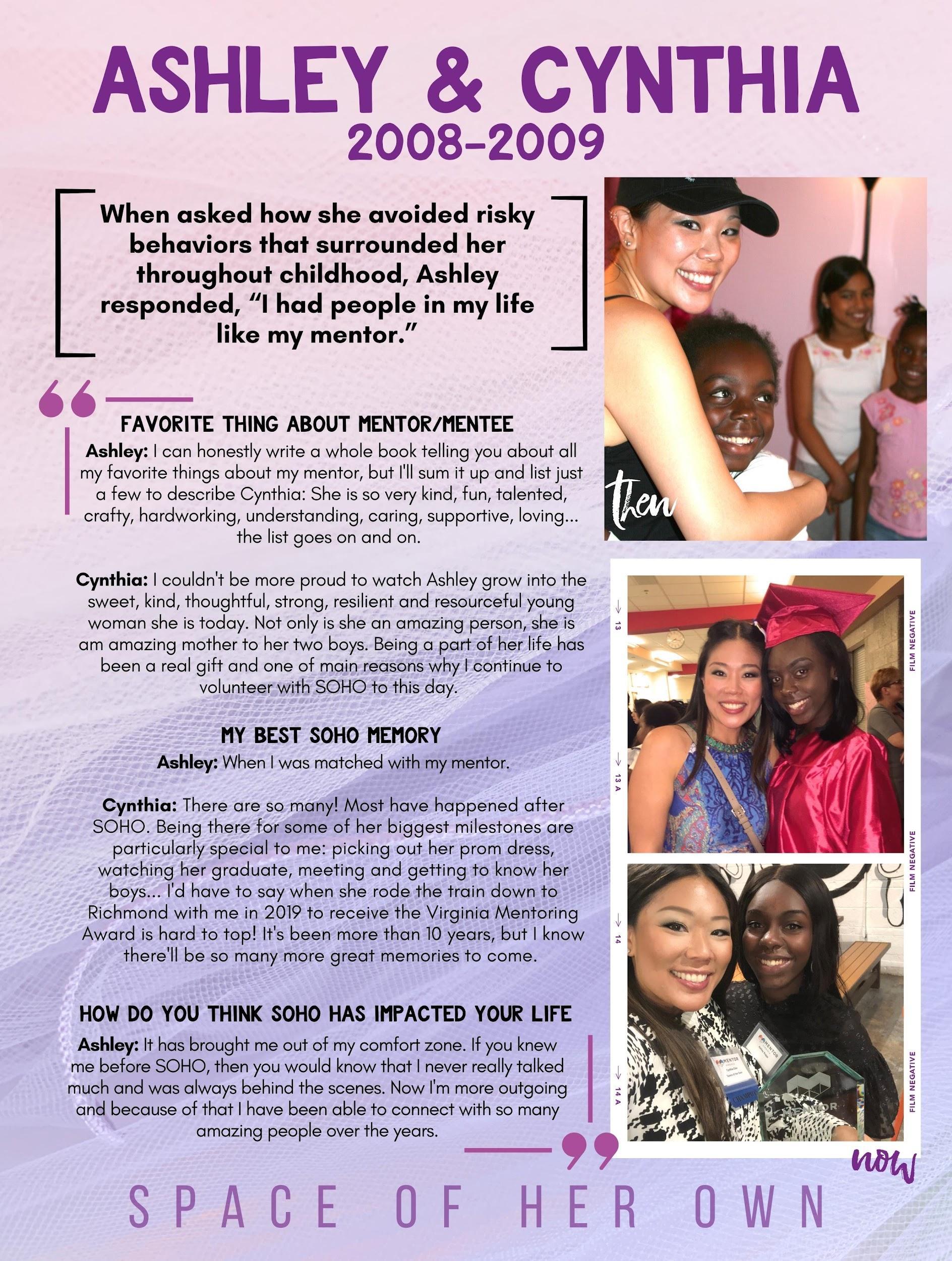 I have loved being in SOHO and attending SOHO Club events over the past few years. I’m glad that I have the opportunity to intern with SOHO. I hope this new group of SOHO girls will come to love their mentors and have a great time while they are in the program. I hope they keep their friendships with other mentees and that the relationships with their mentors are long lasting.