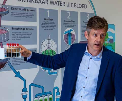 kent een investering van 5 miljoen euro, waarvan 2 miljoen euro specifiek om tot drinkbaar water te komen. Die zuiverheid is noodzakelijk wanneer je voedingsstoffen produceert. Nadat het water door de klassieke zuiveringsbekkens voor denitrificatie, beluchting en bezinking is gepasseerd, halen we de kleinste partikels eruit in nog eens 3 stappen: een glasfilter, kaarsenfilter en omgekeerde osmose. Bij dat laatste proces persen we het water onder hoge druk door fijne membranen, waarbij zelfs zout in de filter achterblijft.”