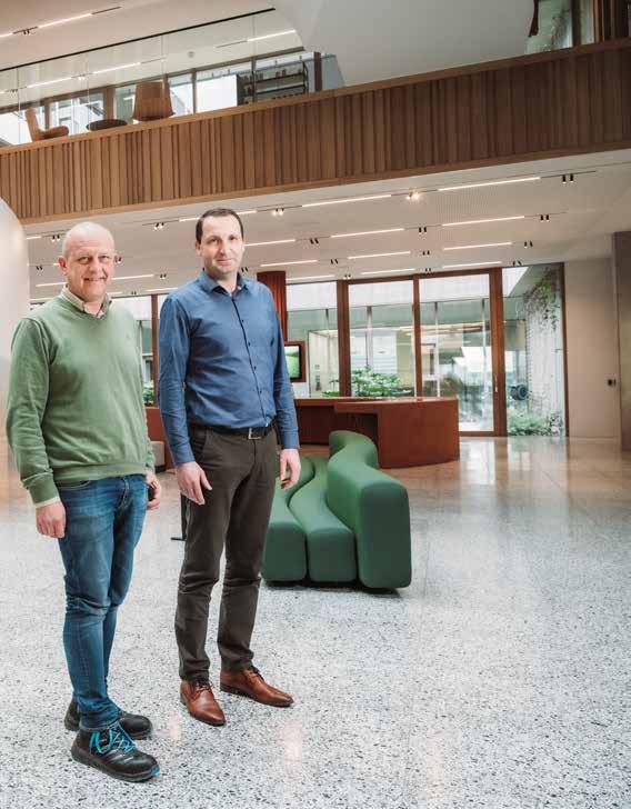 van het nieuwe gebouw. “Het is de algemene ingang geworden voor onze arbeiders”, zegt Goens. “Ze kunnen zich er omkleden voor ze naar hun werkplek gaan en er zijn douches voorzien. We hebben er ook de hr-afdeling voor de arbeiders een plek gegeven, zodat nieuwe of tijdelijke medewerkers er vlot opgevangen worden.”