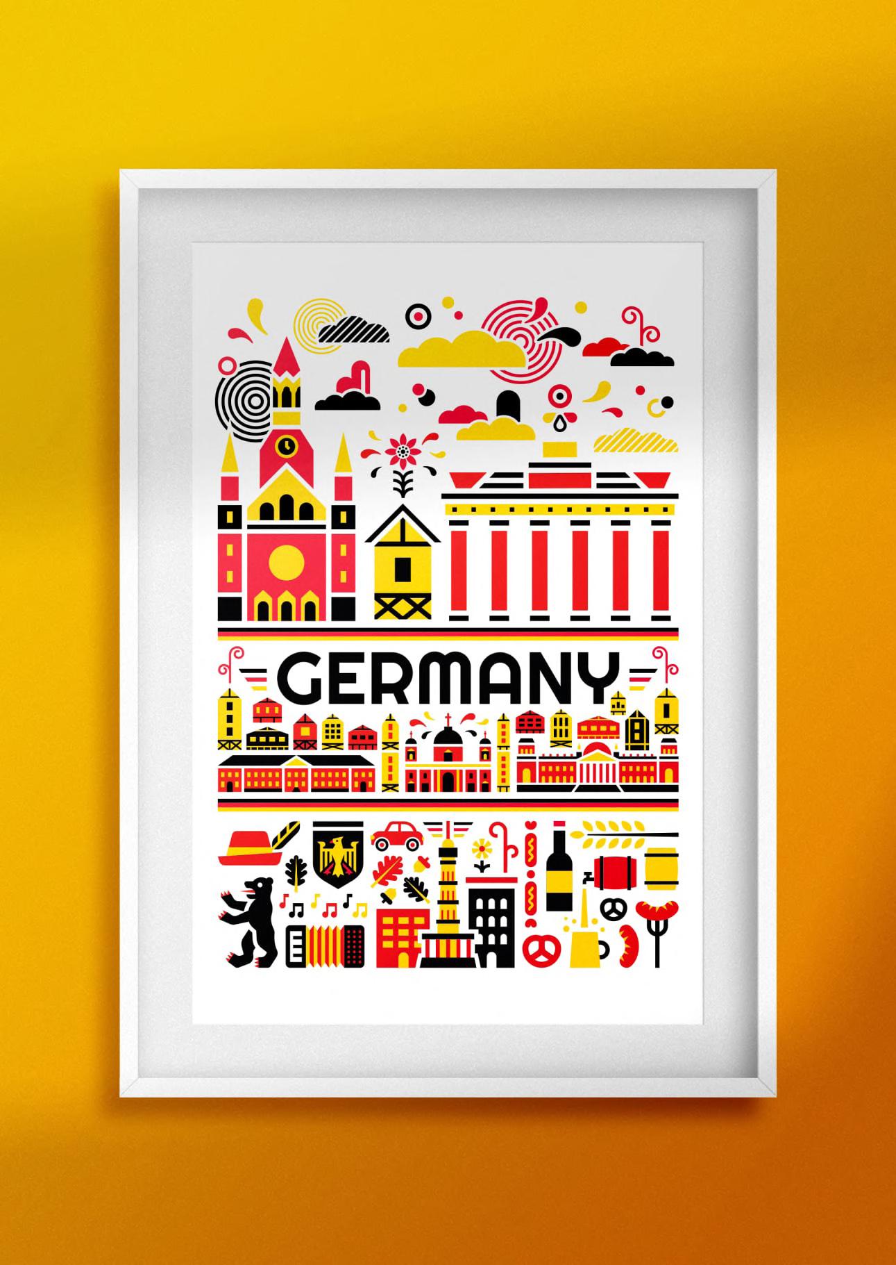Concept d’affiche représentant l’héritage culturel sous toutes ses formes. Conçue avec des éléments minimalistes et les couleurs du drapeau du pays qui est représenté sur l’affiche.