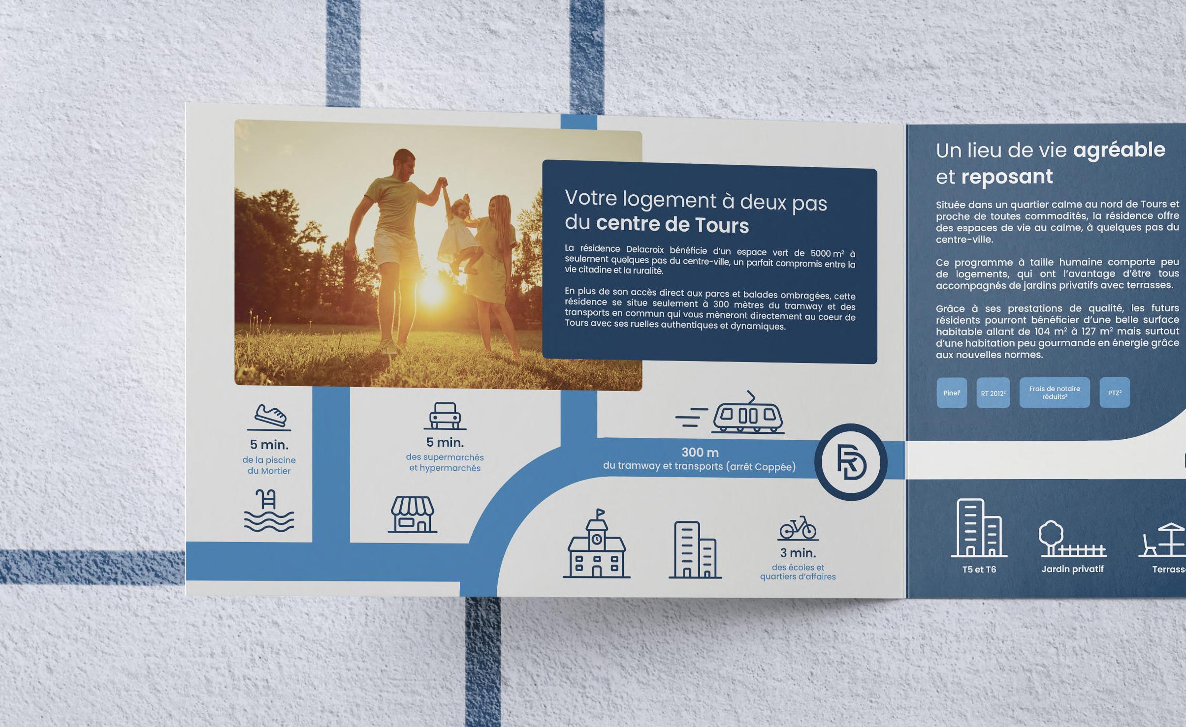 Suite à l’inauguration de la résidence Delacroix construite par le groupe ADS invest, une brochure a été créée pour mettre en avant les différentes qualités et services proposés par la résidence.